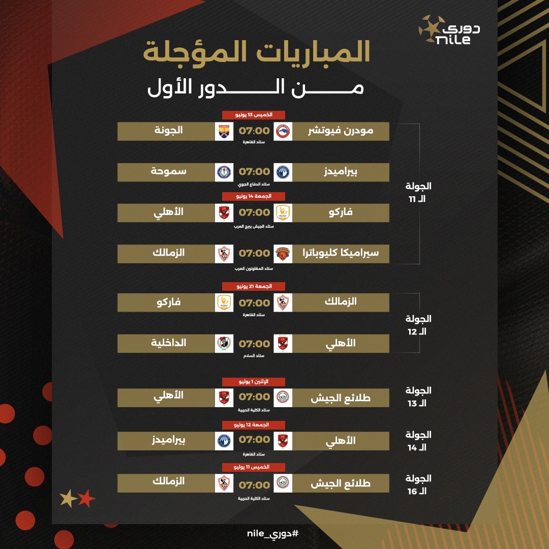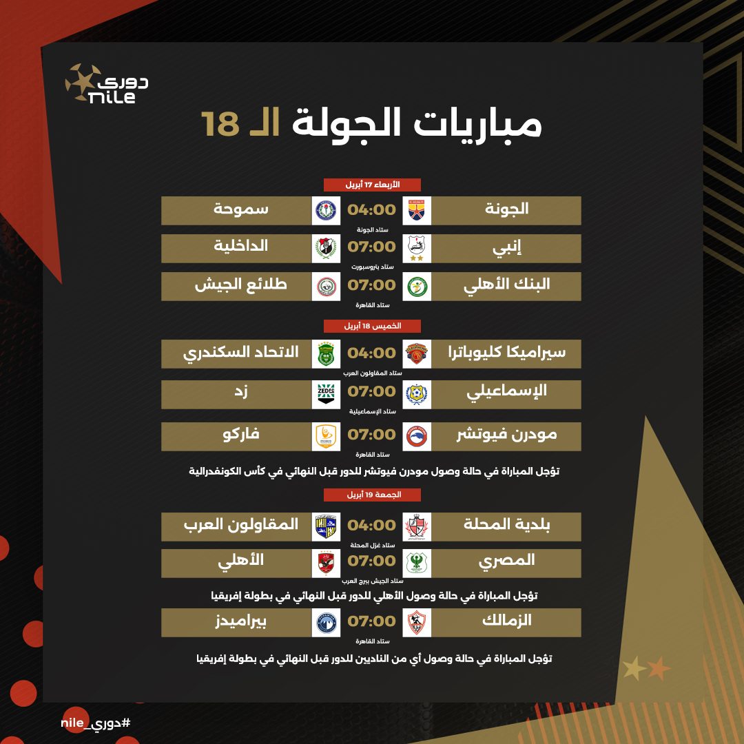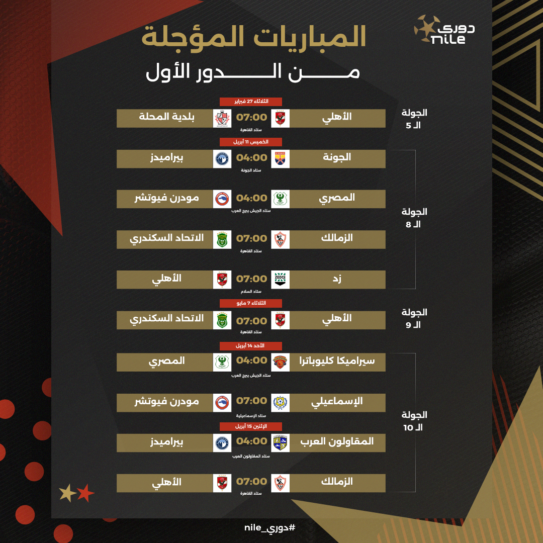 يذكر أن هناك العديد من المباريات المؤجلة في الدور الأول من بطولة الدوري الممتاز بسبب مشاركة 4 أندية في البطولات الأفريقية.