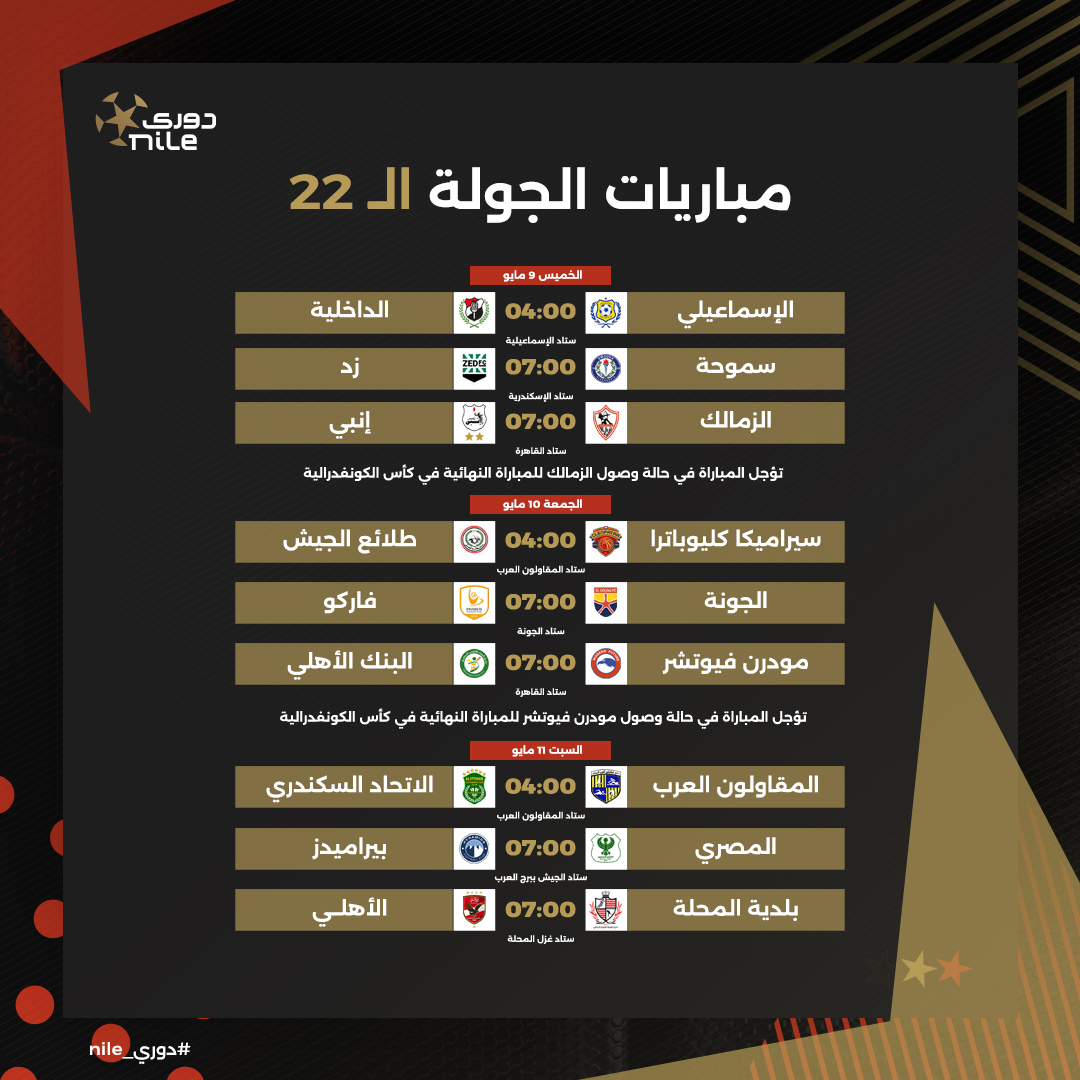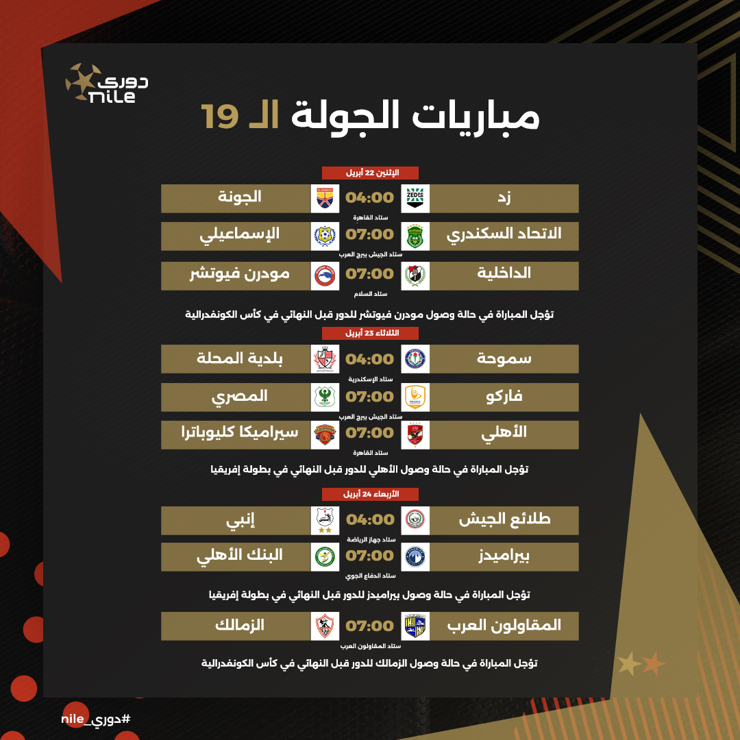 حيث يشارك الأهلي وبيراميدز في دوري أبطال أفريقيا، كما يشارك الزمالك ومودرن فيوتشر في الكونفدرالية.