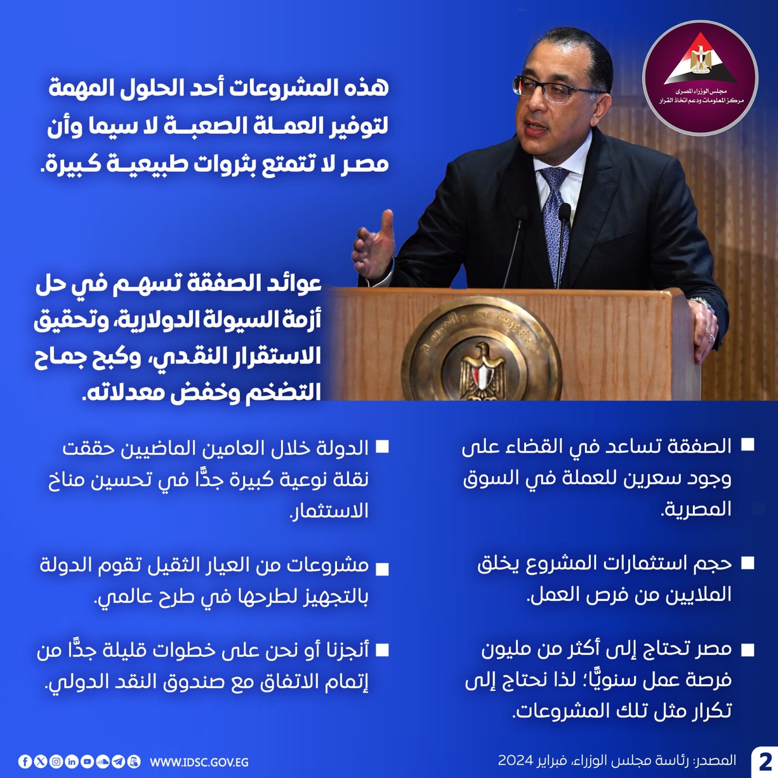 السيطرة على التضخم والأسعار.. أبرز تصريحات رئيس الوزراء بعد صفقة رأس الحكمة (إنفوجراف)