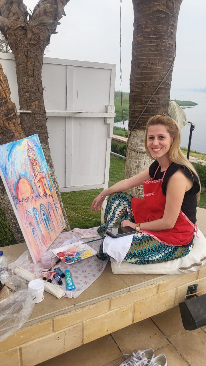 أضافت د. دينا طريف انها تتبني مفهوم سياحه الفن التشكيلي حيث يستلهم الفنانين أعمالهم من خلال البرنامج السياحي أثناء فتره الملتقى وان اللوحات تعبر عن طبيعه المكان.