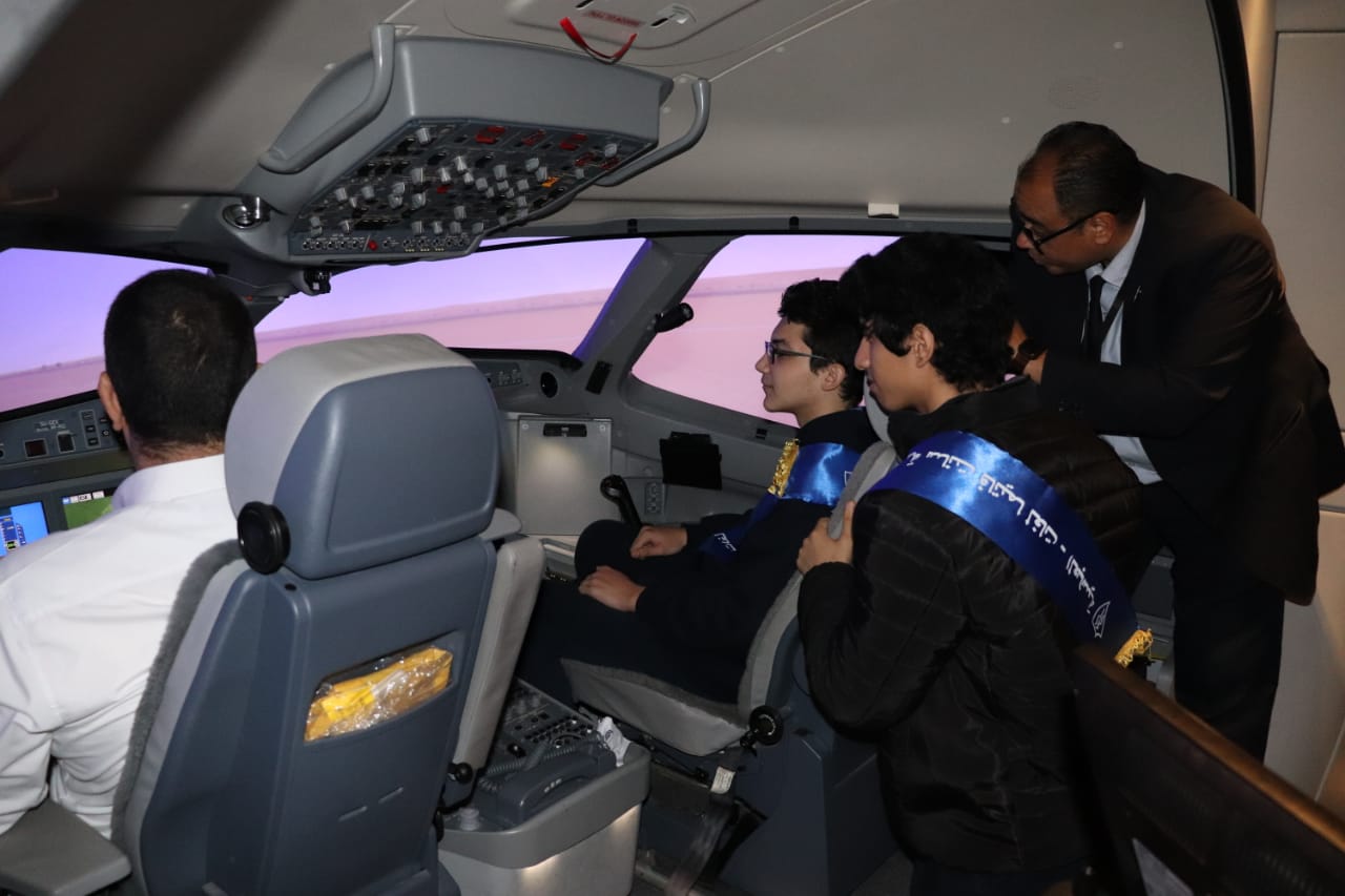 كما اطلع الطلاب خلال الجولة على أحدث أجهزة الطيران التمثيلى المخصصة لتدريب الطيارين بالأكاديمية، والتى تتمثل فى أجهزة الطائرات من طرازات