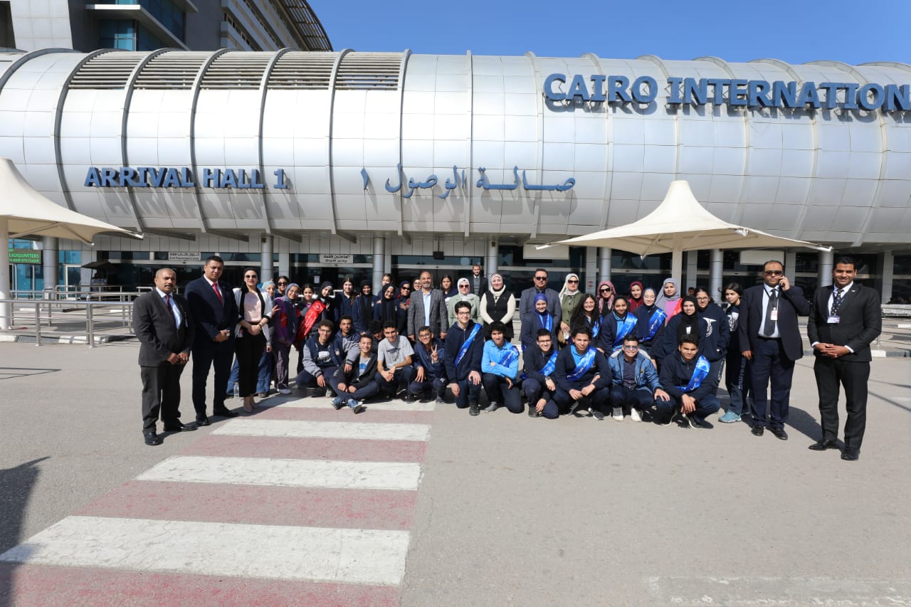 بعدها انتقل الطلاب إلى مطار القاهرة الجوى وتفقدوا معالم ومبانى المطار، وخلال الجولة أشاد الطلاب بمبانى ومرافق مطار القاهرة وما شاهدوه من طفرة كبيرة في قطاع الطيران المدني.