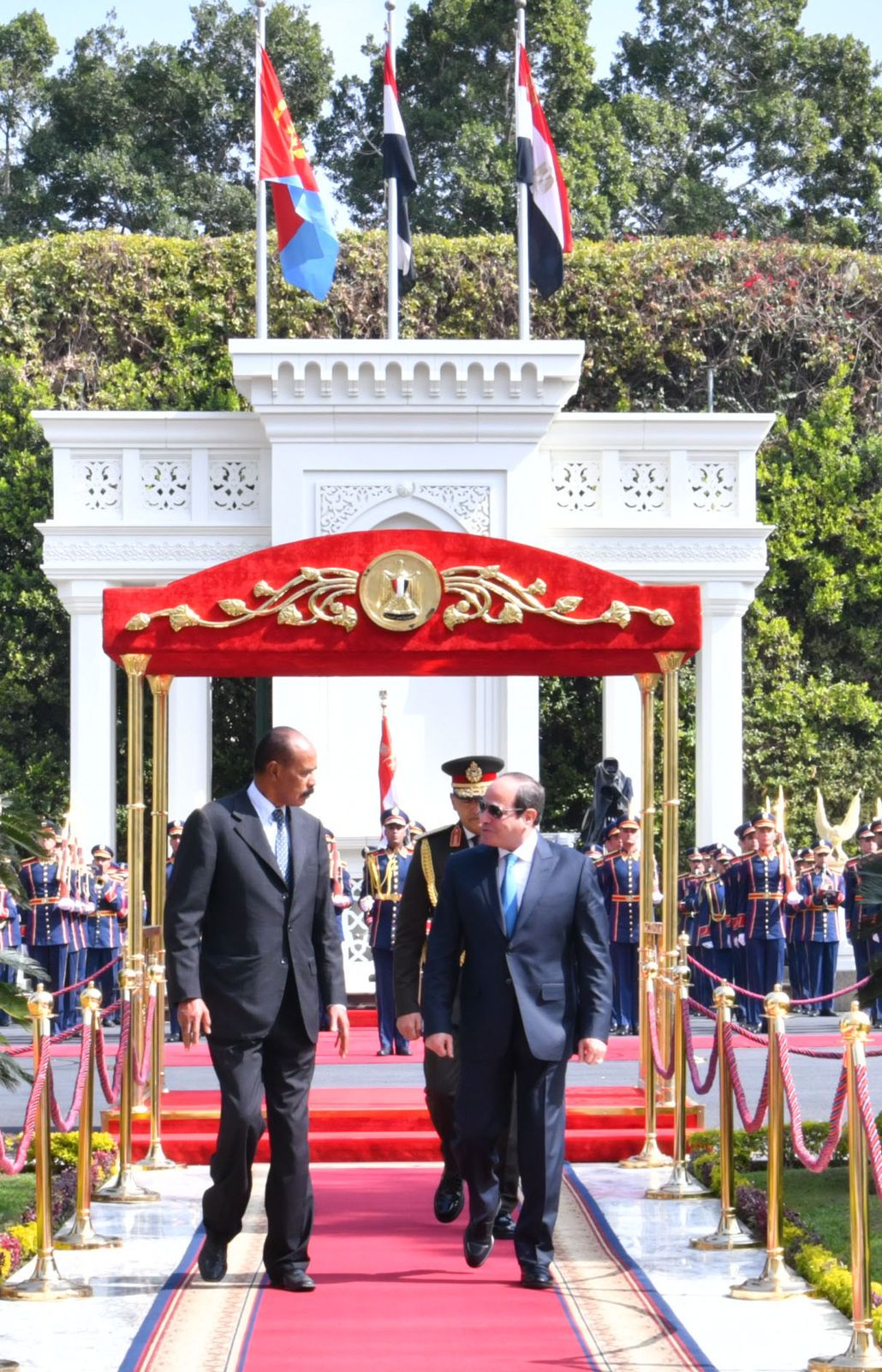 استقبل الرئيس عبد الفتاح السيسي، اليوم بقصر الاتحادية، الرئيس الإريتري "أسياس أفويرقي"، حيث أقيمت مراسم الاستقبال الرسمي وتم عزف السلامين الوطنيين واستعراض حرس الشرف.