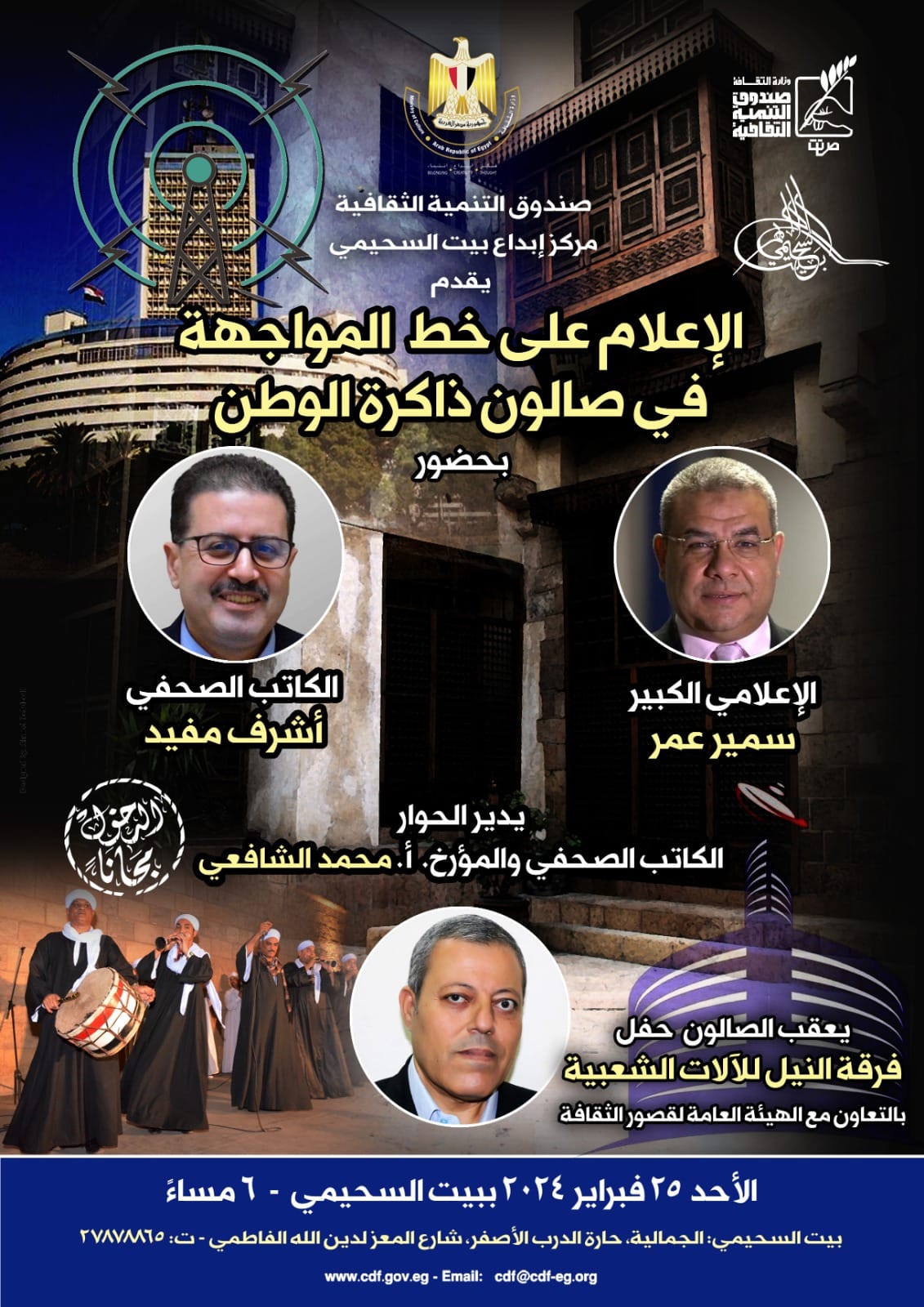 الإعلام على خط المواجهة، أمسية جديدة في صالون ذاكرة الوطن ببيت السحيمى، اليوم