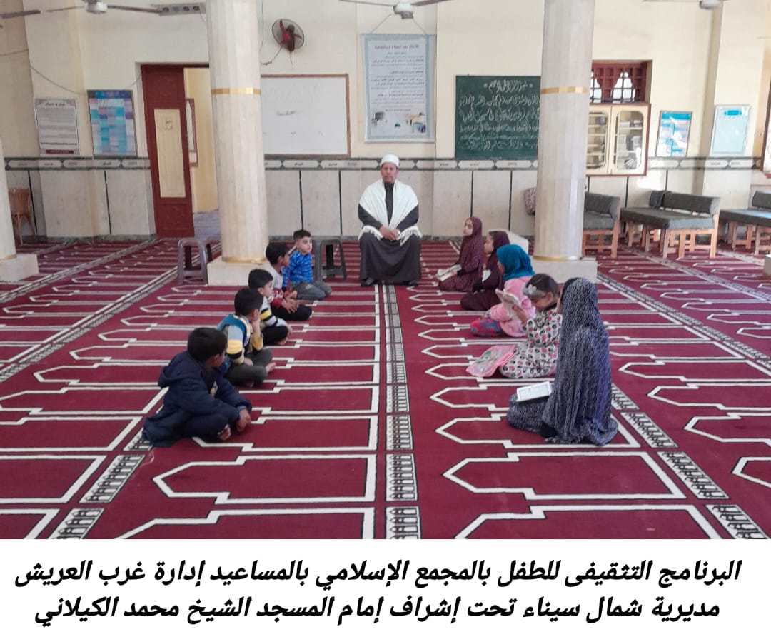 وفي مديرية أوقاف شمال سيناء أقيم البرنامج في (246) مسجدا، منها: مسجد أبو سمور، ومسجد التعمير، بمشاركة (5675) طفلا.