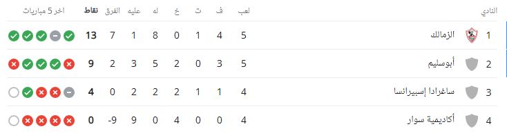 ترتيب مجموعة الزمالك في الكونفدرالية بعد الفوز على أبو سليم الليبي