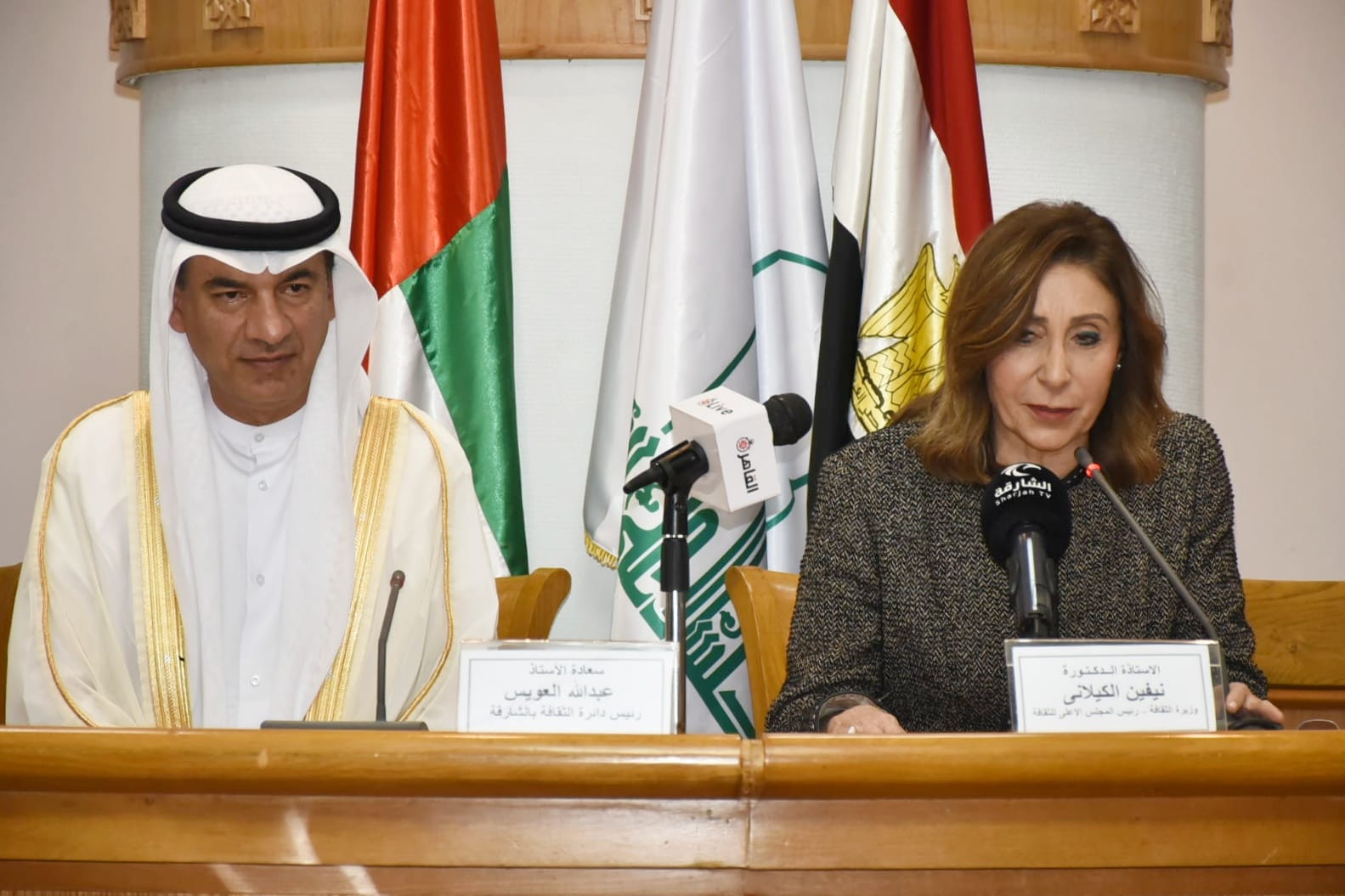 وقال عبد الله بن محمد العويس، رئيس دائرة الثقافة بالشارقة: "تتجدد البهجة والسعادة بتجدد اللقاءات الأخوية، وتتعزز أواصر المحبّة، عندما تكتمل عناصرها التي يتوجها التواصل العربي والتعاون المشترك، وهذا ما يجسده عمق العلاقات التاريخية بين دولة الإمارات العربية المتحدة، وجمهورية مصر العربية، في ظل قيادة رشيدة تؤمن بأهمية استمرار التواصل العربي في المجالات كافة".