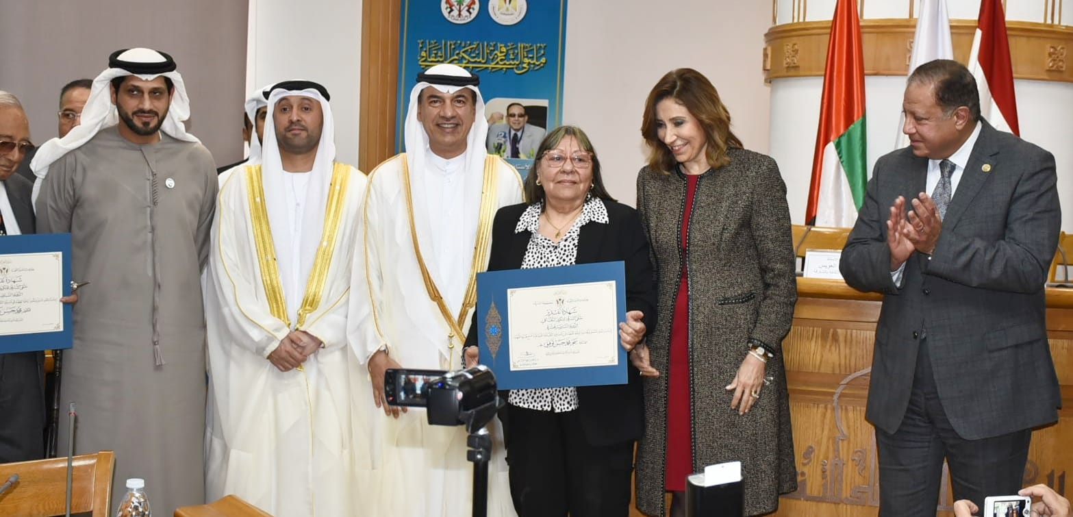 سلمت الدكتورة نيفين الكيلاني، وزيرة الثقافة، وعبد الله بن محمد العويس، رئيس دائرة الثقافة بالشارقة، تكريمات المبدعين المصريين في "ملتقى الشارقة للتكريم الثقافي" الدكتور حسين حمودة، الأديبة سحر توفيق، الأديب سيد الوكيل، الدكتور محمد حسن عبد الله.