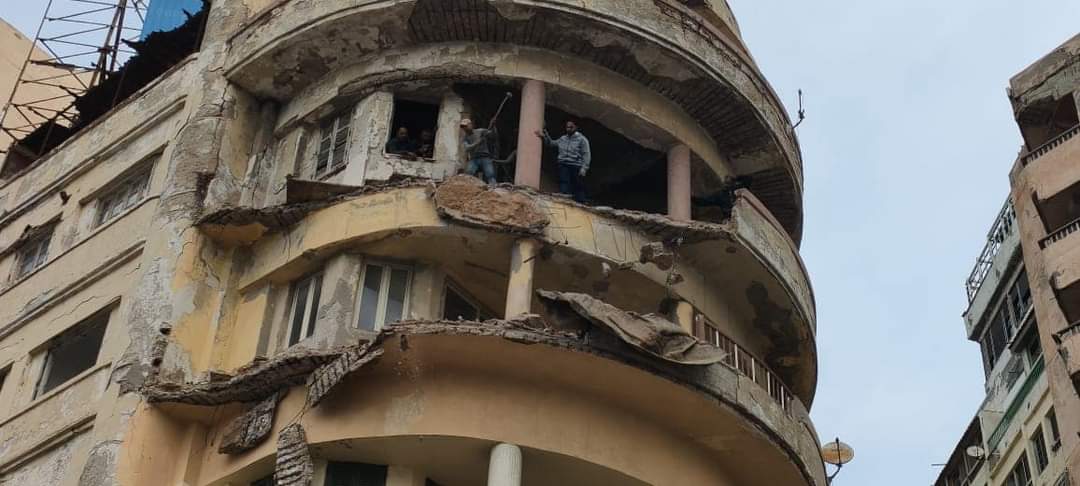 إزالة شرفتين وأجزاء من عقار بطريق الكورنيش في الإسكندرية (صور)