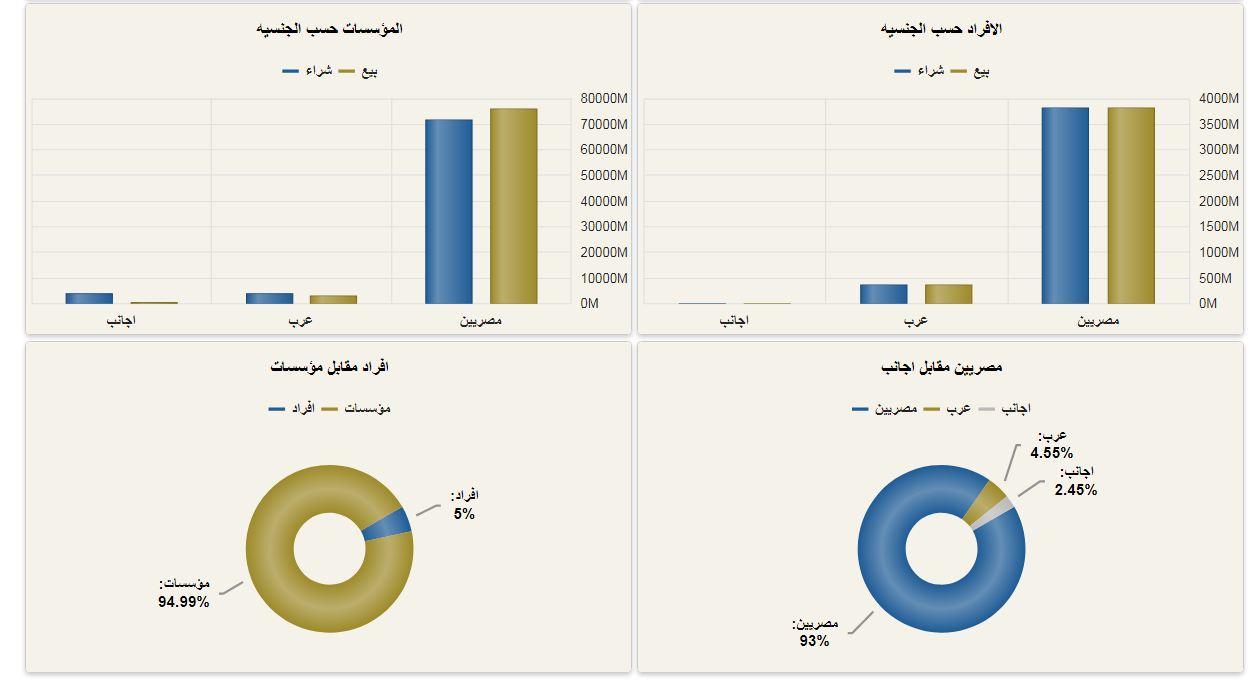 بـ 93 %.. تعاملات المصريين تستحوذ على نصيب الأسد بحركة تداولات البورصة
