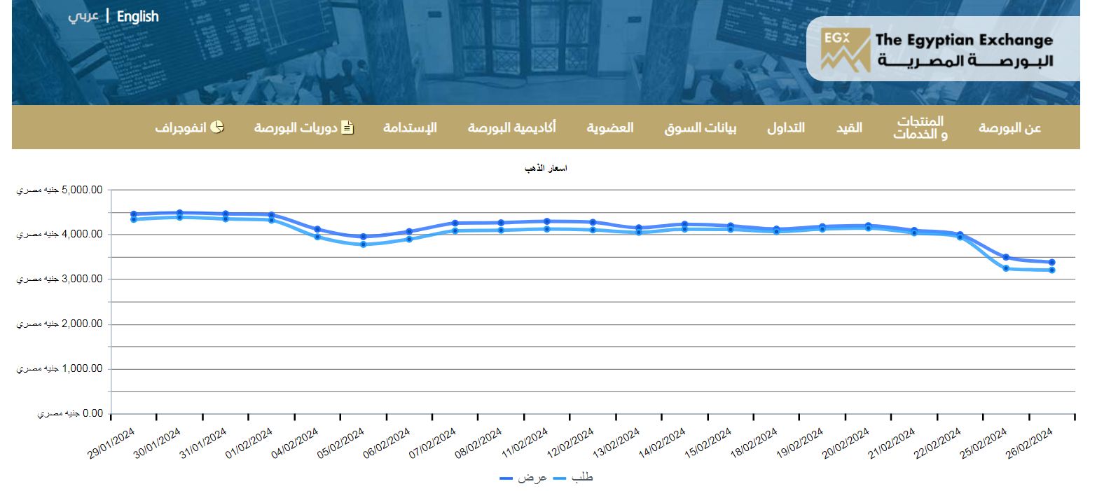 مؤشر الذهب فى البورصة المصرية.. انخفاض أسعار اليوم الثلاثاء 27 فبراير 2024
