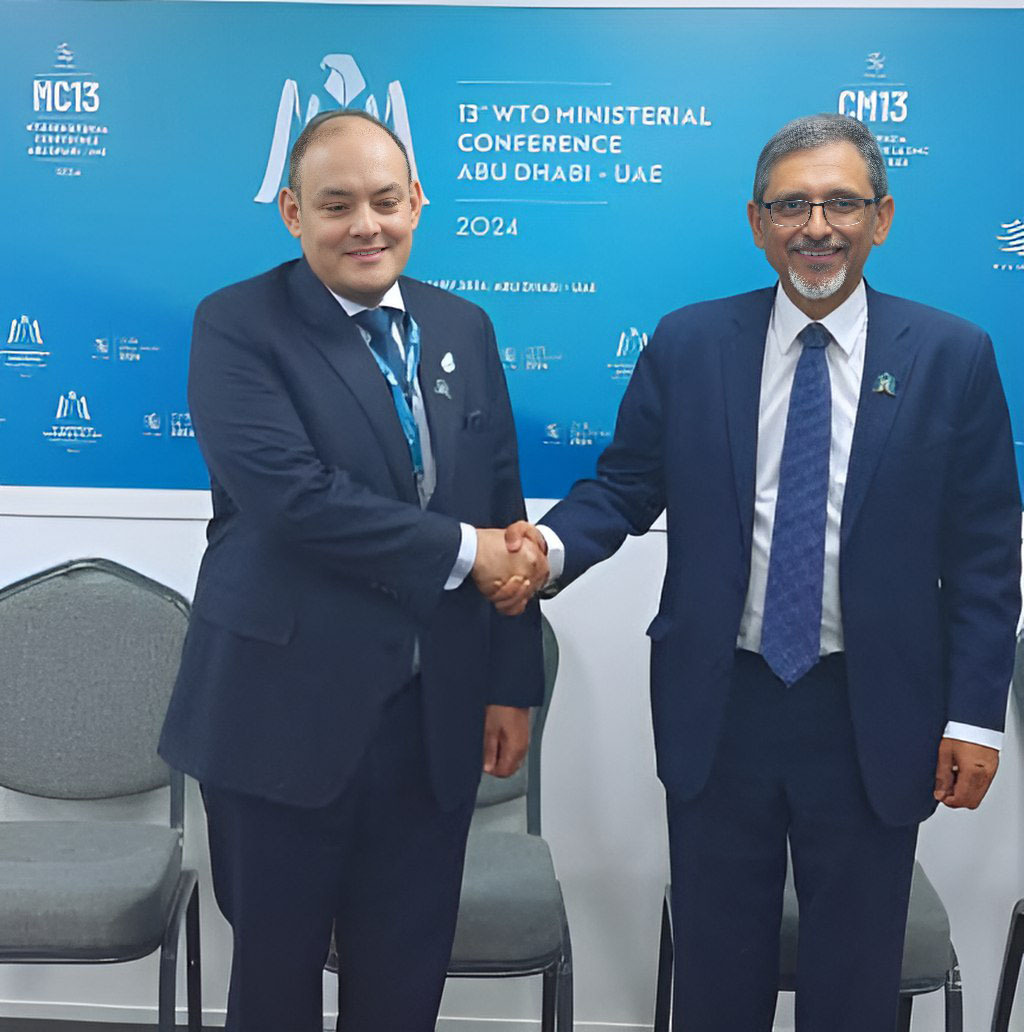 عقد المهندس أحمد سمير وزير التجارة والصناعة سلسلة لقاءات مكثفة مع عدد من وزراء تجارة الدول أعضاء منظمة التجارة العالمية وذلك في إطار المؤتمر الوزاري الثالث عشر لمنظمة التجارة العالمية والذي يعقد بالعاصمة الإمارتية أبو ظبي خلال الفترة من 26-29 فبراير الجاري.