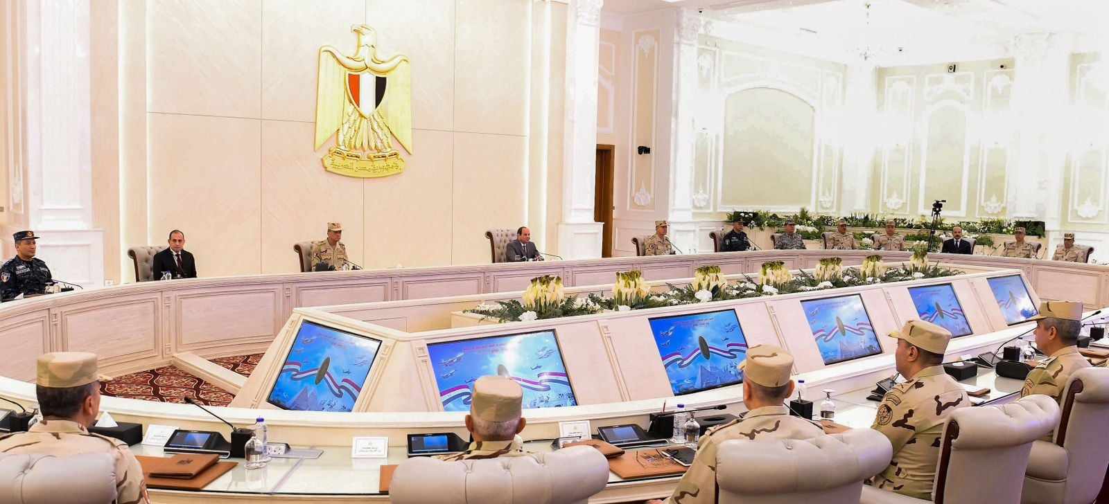 وتناول اجتماع الرئيس مع قادة القوات المسلحة، عددا من الموضوعات والملفات ذات الصلة بالأنشطة والمهام التي تنفذها القوات المسلحة للحفاظ على مقدرات الدولة المصرية وحماية مصالحها الاستراتيجية.