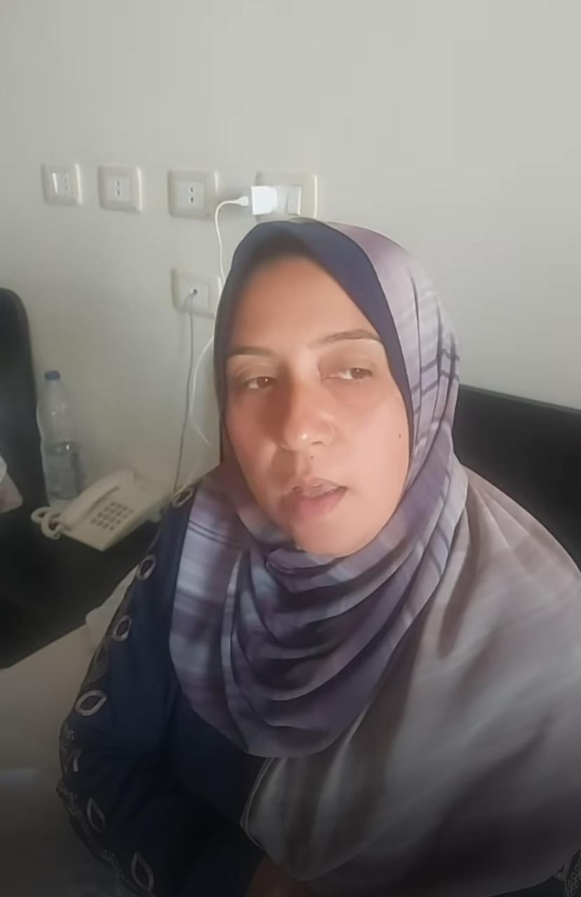 وقالت "عبير عامر" 44 سنة، من منطقة تل الهوى بقطاع غزة: "وصلت معبر رفع المصري، وحضرت مع والدي لأنه مصاب بسرطان فى العظام، ونتيجة قصف المستشفيات فى غزة لم نجد علاجا لوالدي، من جراء السرطان فى العظم، ودخلنا لمستشفى بني سويف الجامعي رفقة الذي بدأ على الفور الخضوع للفحوصات الطبية بالمستشفى، وبعدها نقلتي المسئولينإالى فندق تابع للجامعة "للامانة المصريين شايلينا على كفوف الراحة وحسينا إننا فى بلدنا الثاني".