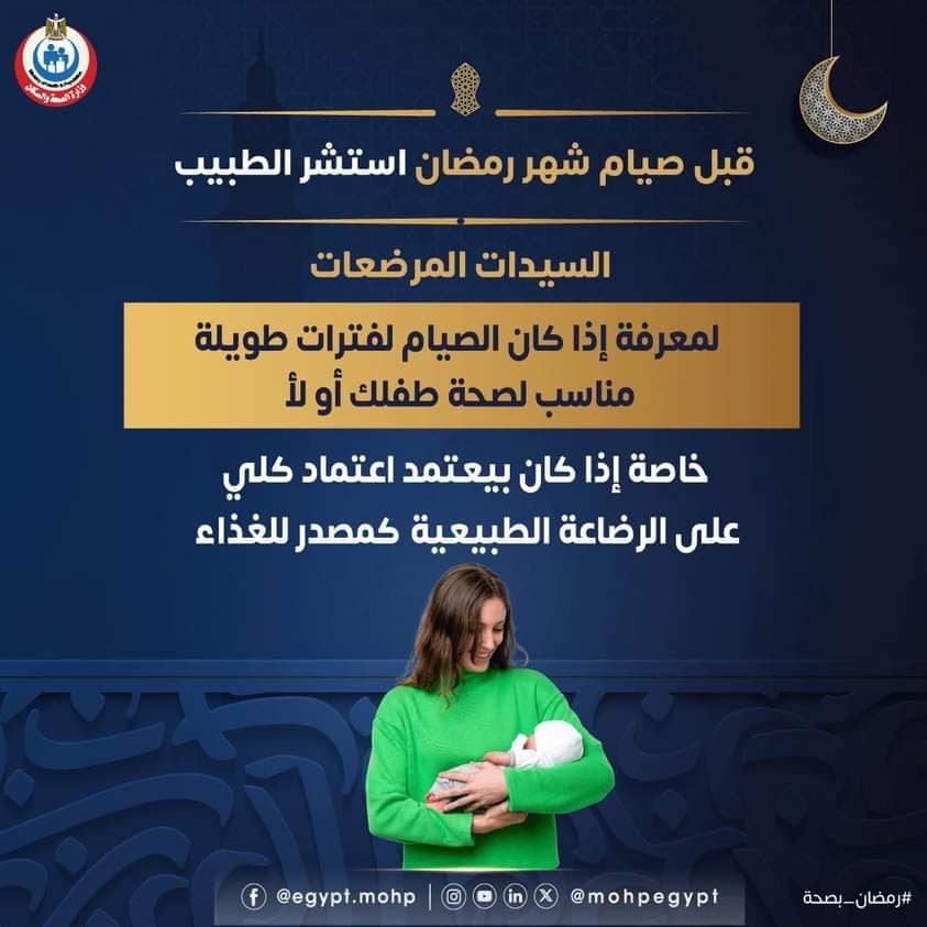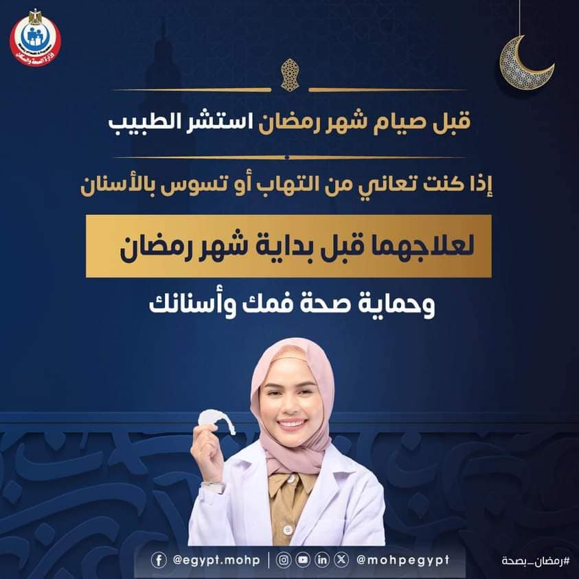وأطلقت وزارة الصحة هاشتاج رمضان بصحة، وناشدت المواطنين بمتابعة كل ما ينشر على هاشتاج رمضان بصحة للتوعية الصحية في رمضان.
