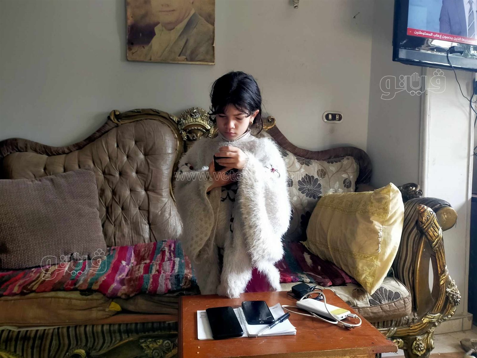 ورصدت"فيتو" بالفيديو والصور أثناء قيام زوجته برفقة ابنته ريهام بمساعدته في تناول الدواء والمأكولات وهو على فراش المرض داخل المنزل.