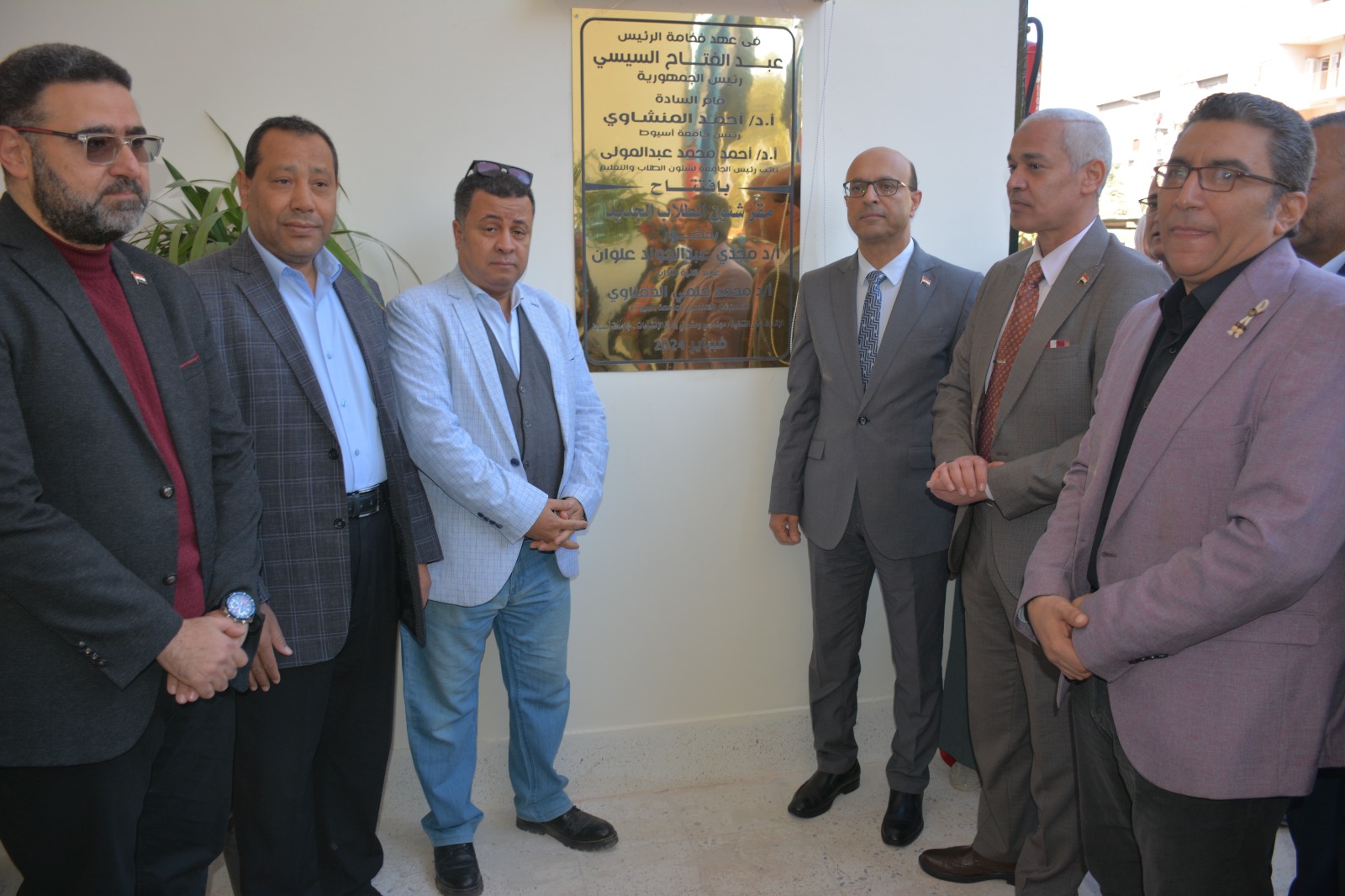 وفي سياق متصل، افتتح الدكتور أحمد المنشاوي؛ عددًا من القاعات التدريسية؛ بعد إعادة تأهيلها، وتجهيزها، بكافة بأجهزة العرض، والمقاعد الحديثة، والإضاءات الجيدة، والتهوية المناسبة، والتي تتضمن اثنين من القاعات التدريسية، وقاعة للندوات، وذلك في إطار حرص الجامعة على تطوير البنية التحتية، والمعلوماتية بكلياتها المختلفة، وتحسين جودة وكفاءة المخرجات التعليمية، وتقديمها في أفضل صورة ممكنة.