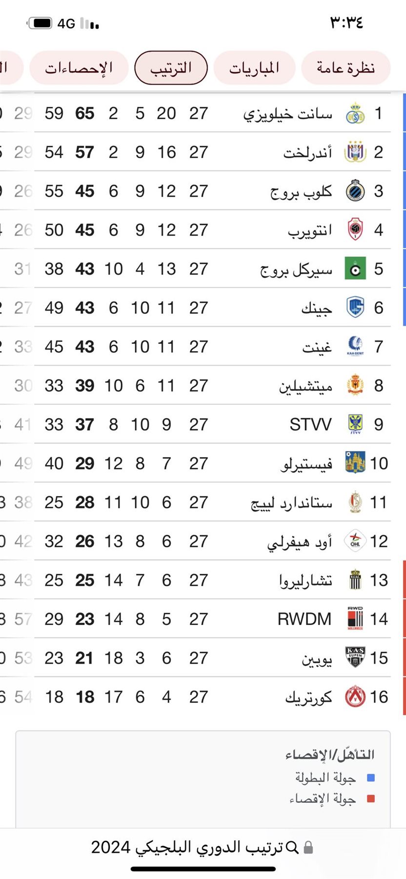قلت لربما يكون كلامه صحيحا، فدخلت أراجع الدوري البلجيكي، فوجدت دوري من 16 فريقا لعب 27 أسبوعا وباقي له 3 أسابيع على نهايته يعني دوري بين الـ16 ناديا من دورين، ثم بعد ذلك يشارك الستة الأوائل بنصف عدد نقاطهم من الدورين لتحديد بطل الدوري، والمشاركين في البطولات القارية، وهكذا وليس دور واحد كما سمعناه من سيادة النائب.