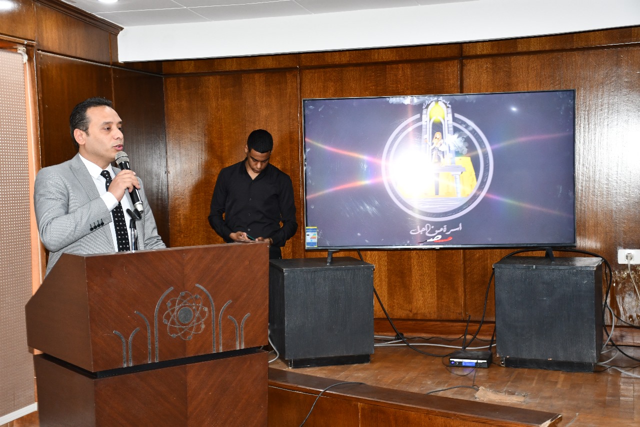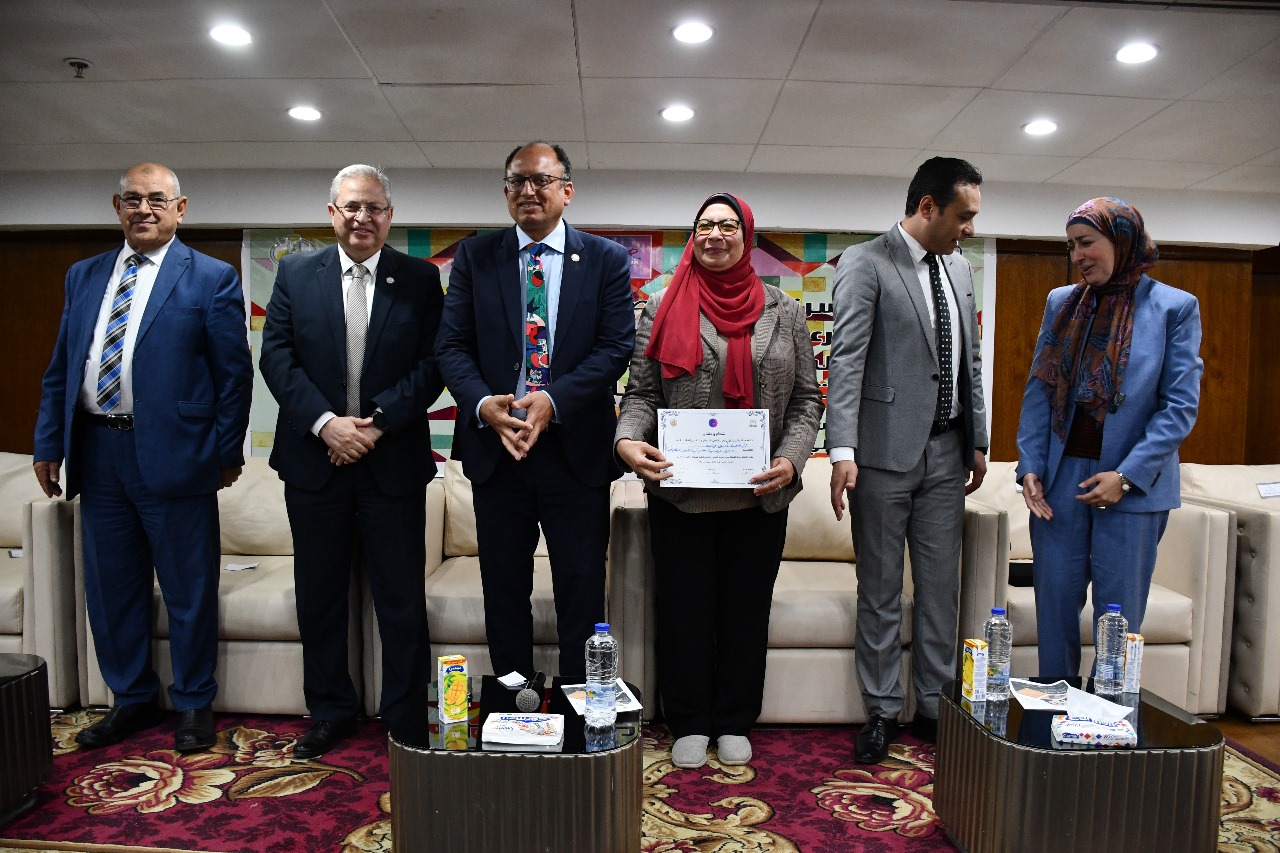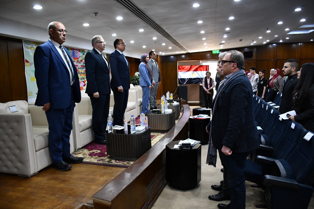 بحضور الدكتور حسام رفاعي نائب رئيس الجامعة لشئون التعليم والطلاب، الدكتور أشرف رضا مستشار رئيس الجامعة للفنون والرئيس التنفيذي لمجمع الفنون والثقافة، الدكتور احمد عليق مستشار رئيس الجامعة للأنشطة الطلابية، الدكتور محمد حلمي رائد أسرة من أجل مصر.