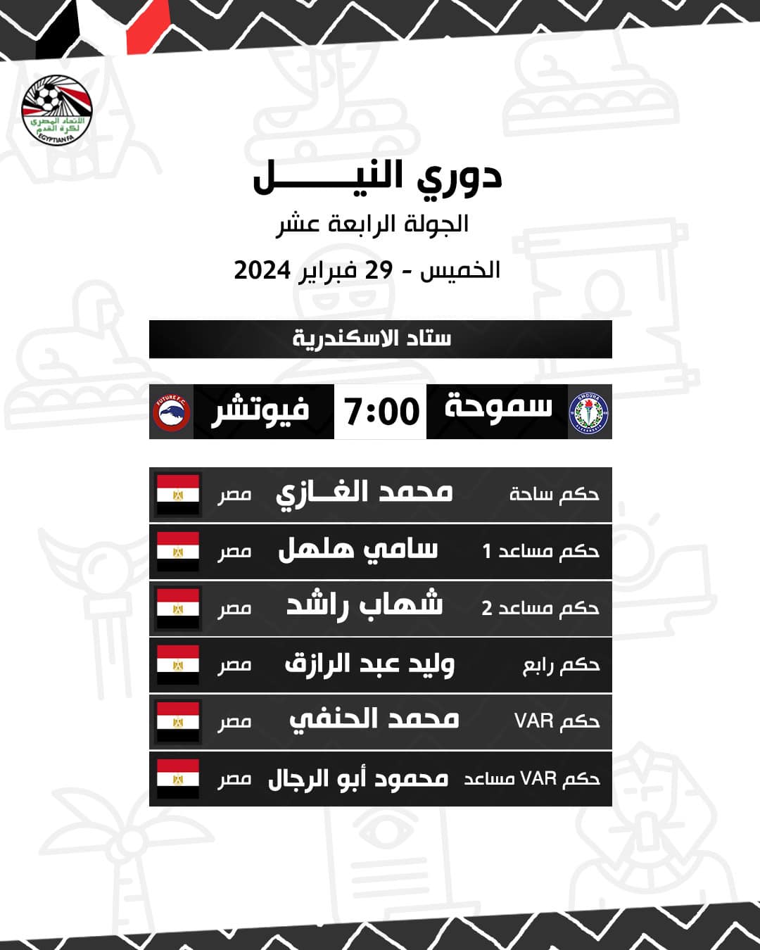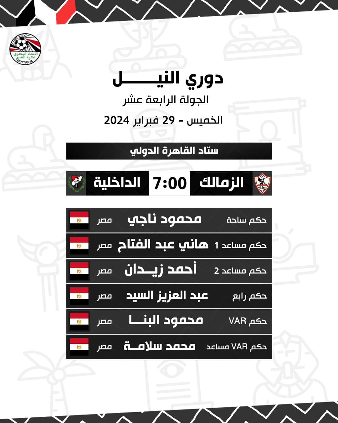 الدوري المصري، محمود ناجي حكما للزمالك والداخلية والغازي لسموحة وفيوتشر