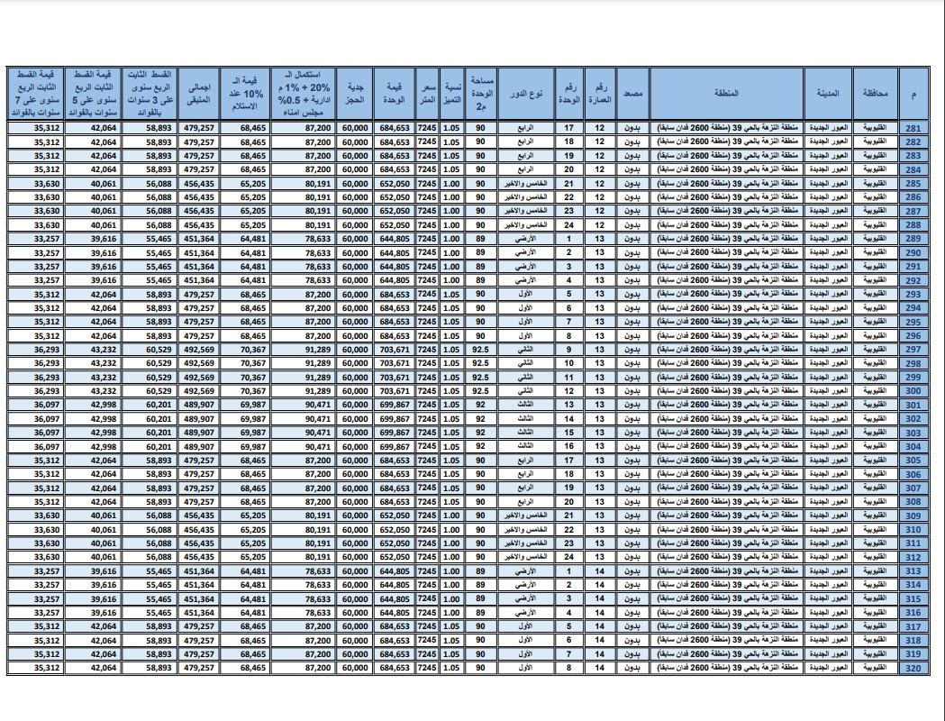 أسعار شقق الإسكان المتميز بالطرح التكميلي