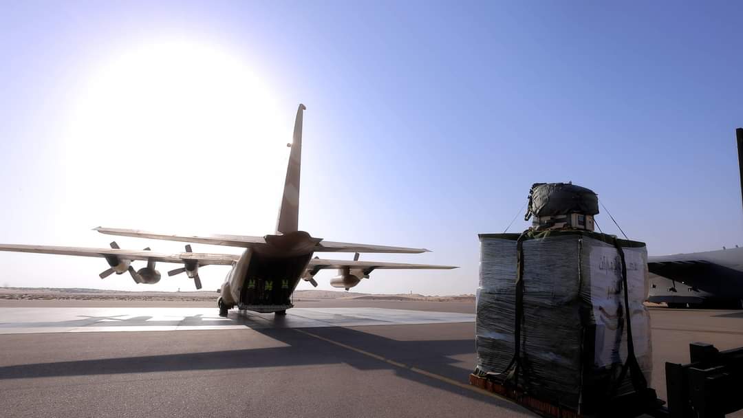 تنفيذاً لتوجيهات الرئيس عبدالفتاح السيسى رئيس الجمهورية القائد الأعلى للقوات المسلحة بإستمرار الجسر الجوى لنقل المساعدات الإنسانية العاجلة للأشقاء الفلسطينيين بقطاع غزة ، أقلعت عدد من طائرات النقل العسكرى المصرية والإماراتية من مطار العريش لتنفيذ أعمال الإسقاط الجوى ليلاً لعشرات الأطنان من المساعدات والمواد الإغاثية العاجلة للتخفيف من الأزمة الإنسانية الحادة التى يعانى منها المواطنين الفلسطينيين فى شمال غزة .