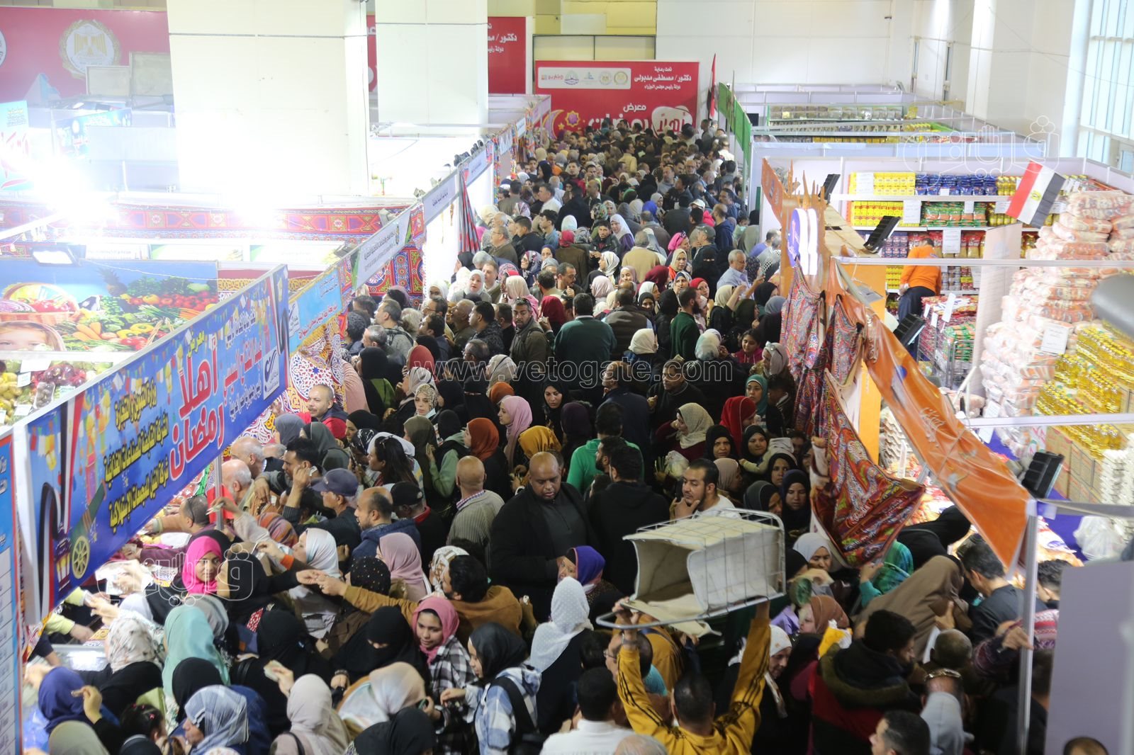 زحام وتدافع في معرض أهلا رمضان بأسوان للفوز بالسلع المخفضة