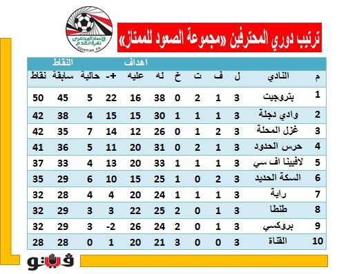 وجاء جدول ترتيب مجموعة الصعود لمسابقة دوري المحترفين قبل الجولة الرابعة كالتالي..