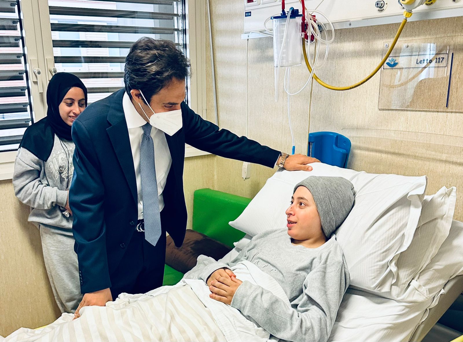 وقد التقى السفير بسام راضي مع الأطباء المعالجين للأطفال وكذلك أسرهم المرافقين لهم للاطمئنان على الحالة الصحية للأطفال ناقلًا لهم تحيات الرئيس السيسي وتمنياته لهم بالشفاء العاجل وكذلك تمنيات ودعوات الشعب المصرى لهم، مؤكدا على كامل استعداد وجاهزية السفارة المصرية بروما بكامل امكانياتها وأعضائها لتلبية طالباتهم وبتقديم أي نوع من الدعم أو التسهيلات لهم ولأعضاء أسرهم.