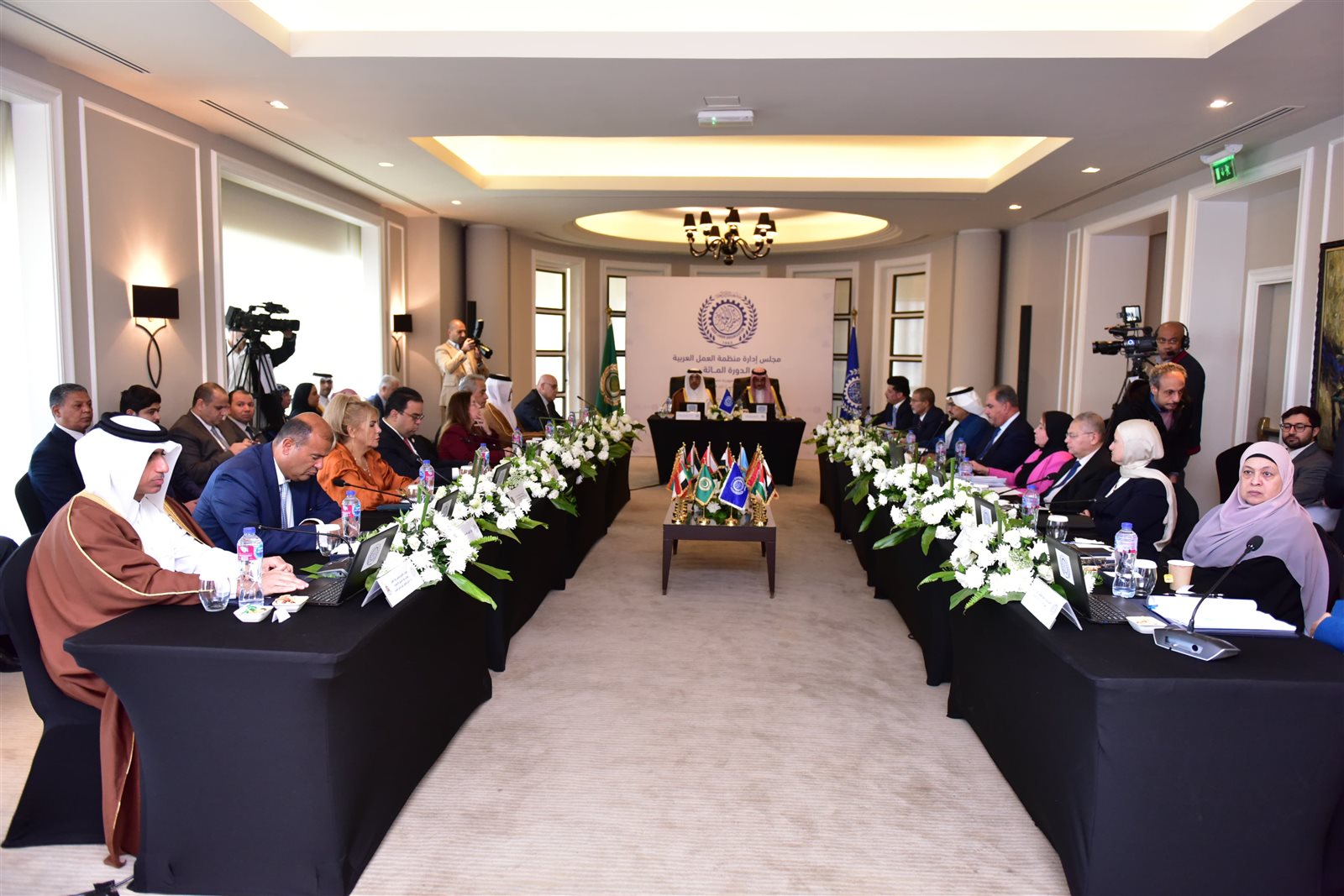 وبدأت فعاليات مجلس الإدارة بكلمة ألقاها المدير العام للمنظمة السيد فايز المطيري، ود. على بن سعيد بن صميخ المري، رئيس مجلس الإدارة، أكدا خلالها على جهود، ودور "المنظمة"،في خدمة قضايا العمل العربي، والتحديات التي تواجه سوق العمل،وكذلك الدعم الكامل للقضية الفلسطينية في مواجهة ممارسات الاحتلال، وأوضحا أن فلسطين قضية العرب الأولى، وما يحدث من عدوان من جانب الاحتلال يستدعي العمل العربي المشترك للوقوف بجانب الحق الفلسطيني وحماية العمال العرب في الأراضي العربية المحتلة..