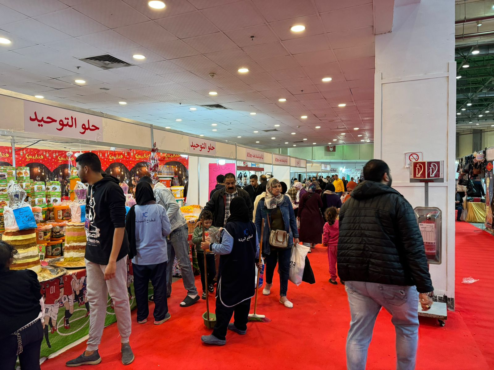 وشهدت صالات العرض تزايد توافد المواطنين اليوم السبت للاستفادة من يوم العطلة الرسمية لشراء مستلزماتهم بأسعار مخفضة داخل المعرض.