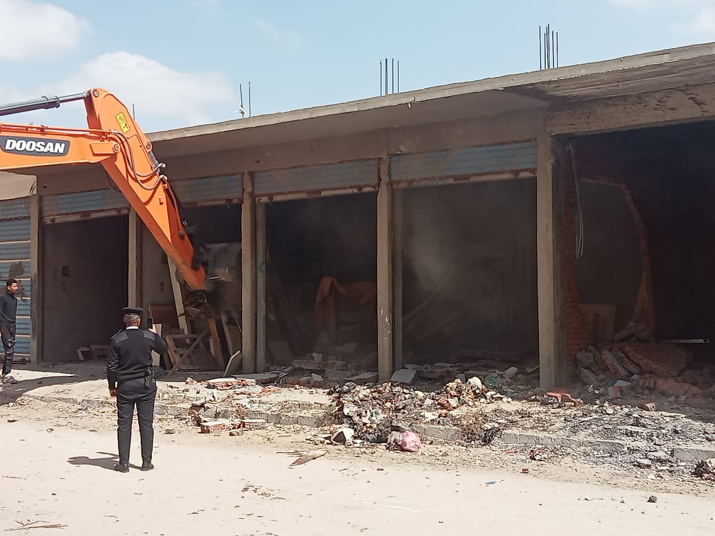 وفي السياق ذاته، تم وقف تنفيذ صبة خرسانية لسقف دور سابع علوي بأرض سوق الجملة والمزادات بمنطقة حي السلام، تم التحفظ على معدات البناء، واتخاذ كافة الإجراءات القانونية اللازمة حيال الواقعة.