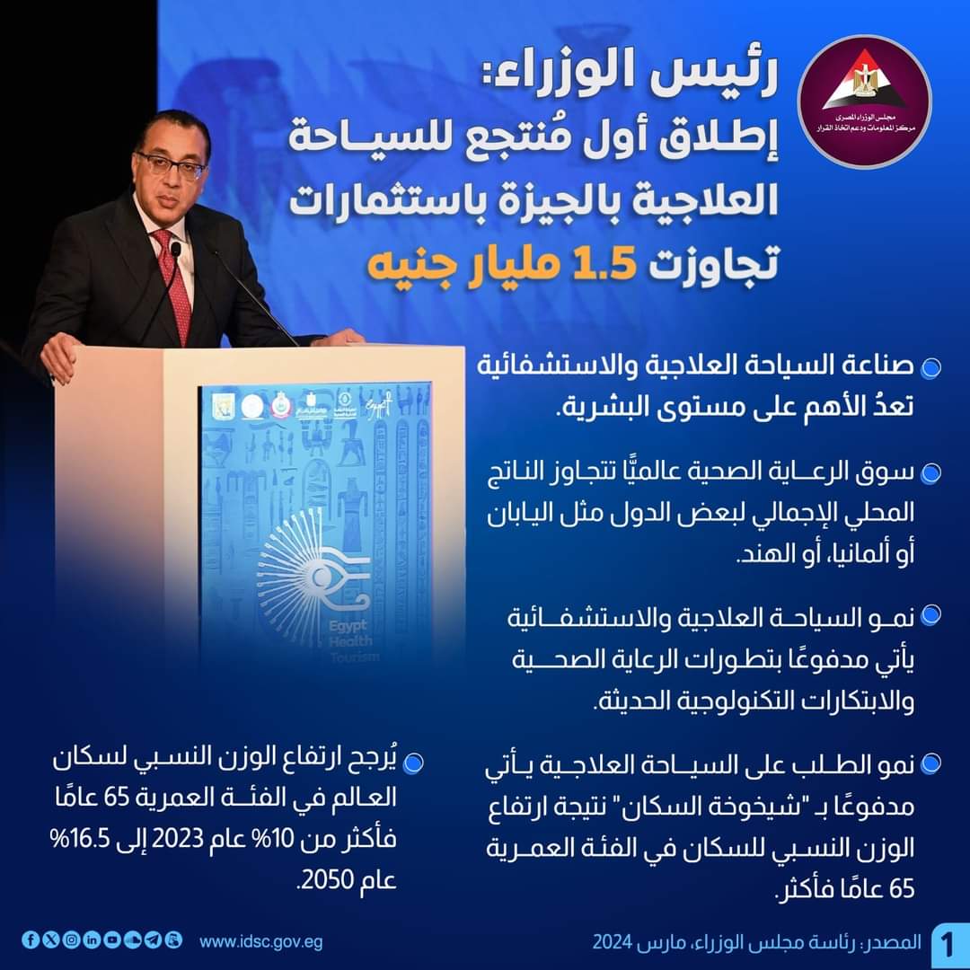 (رئيس الوزراء: إطلاق أول منتج للسياحة العلاجية بالجيزة باستثمارات تجاوزت 1.5 مليار جنيه )