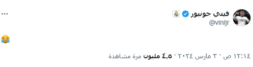 ونشر فينيسيوس على حسابه الرسمي على موقع التواصل الاجتماعي "إكس": (إيموجي) لوجه ضاحك، في إشارة للسخرية مما حدث.