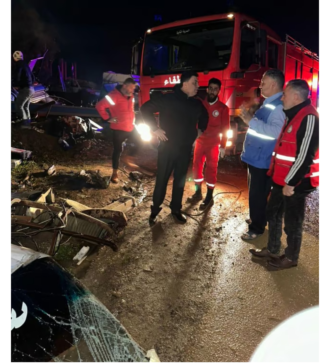 ووفق بيان وزارة الداخلية السورية عبر حسابها في "فيسبوك"، فقد تدهورت الحافلة على الطريق؛ ما أدّى إلى وفاة ستة أشخاص وإصابة 38 آخرين.