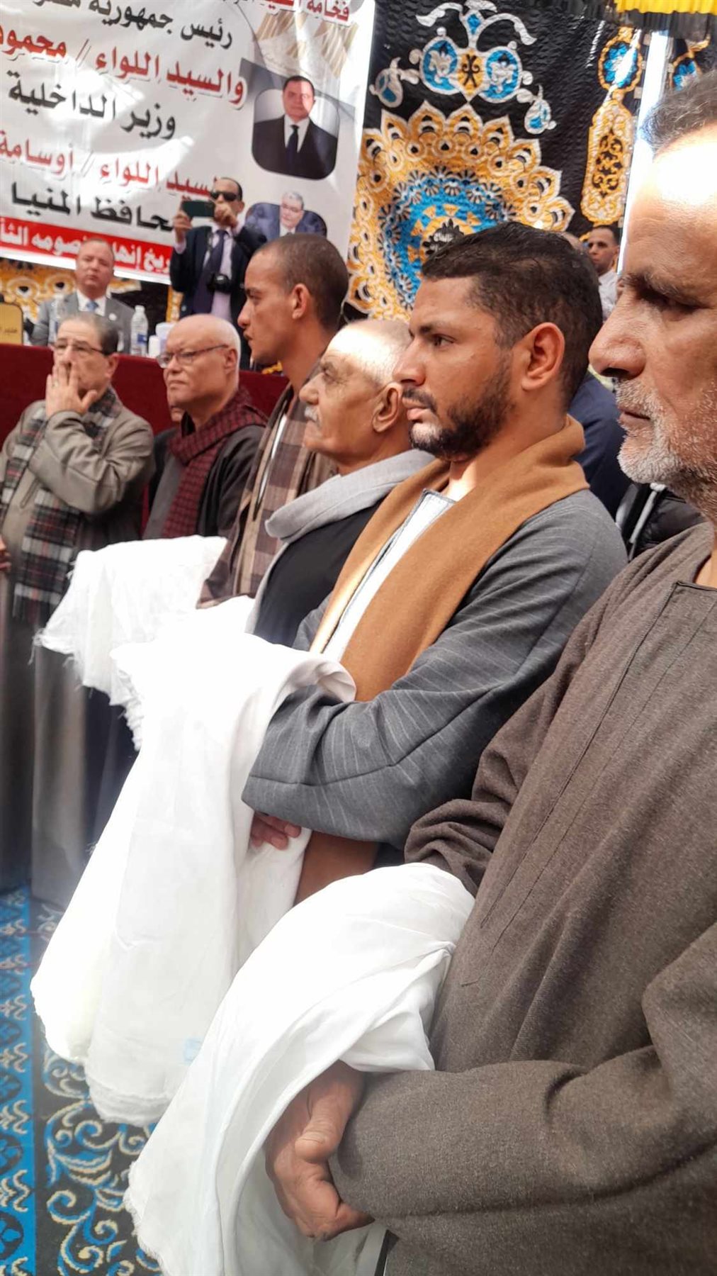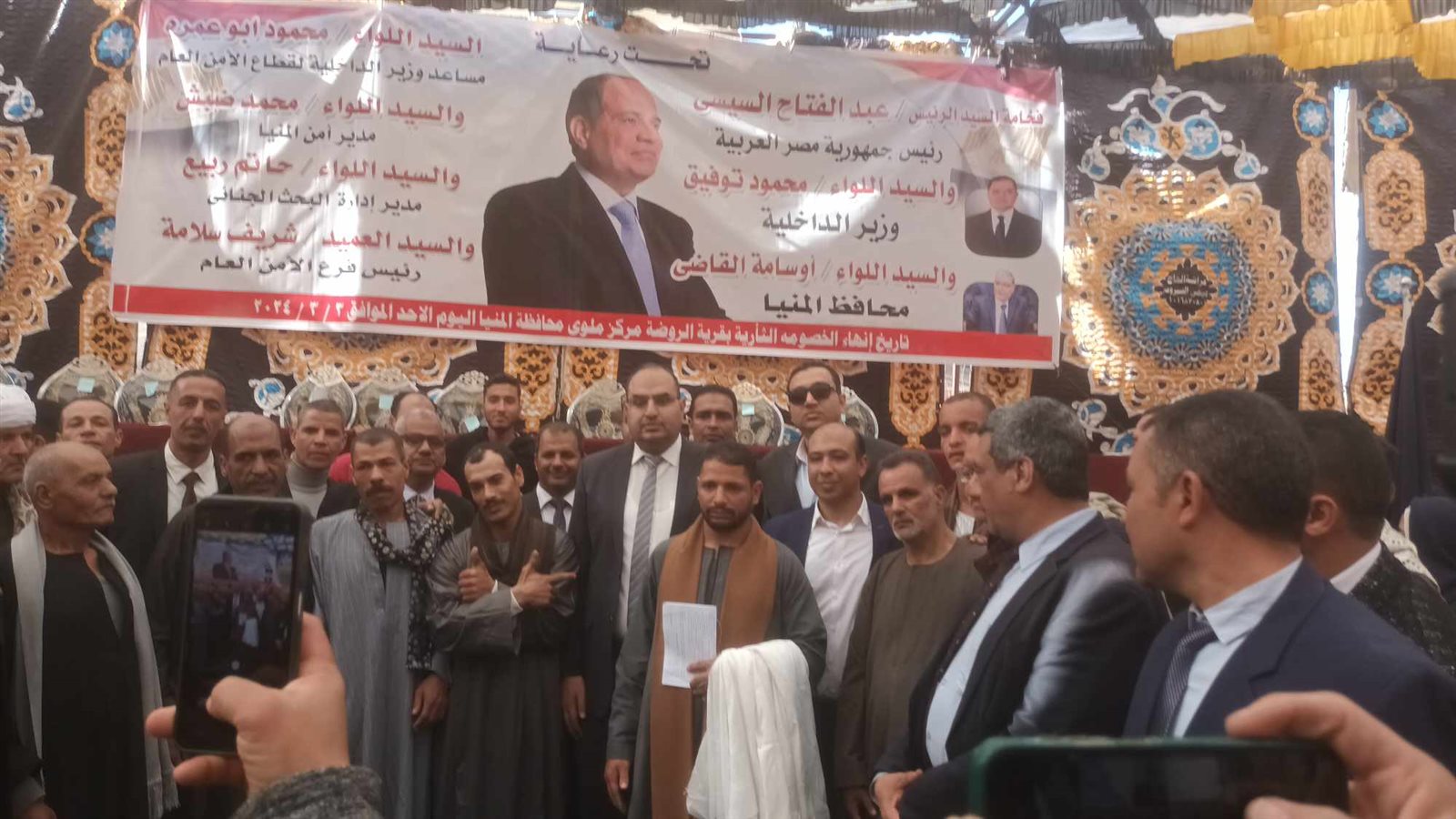 بالإضافة إلى المقدم محمد بكر، رئيس مباحث مركز ملوي، بإشراف اللواء محمد مصطفي ضبش، مدير امن المنيا، وأعضاء مجلس النواب، والشيوخ، وأعضاء لجنة المصالحات، وآلاف المواطنين من أبناء القرية والقري المجاورة.