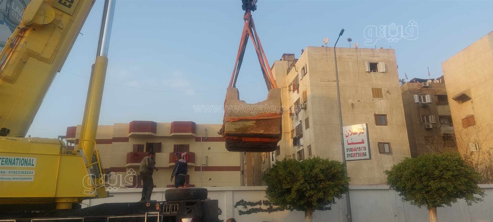 لقطات حصرية من موقع نقل تابوت أثري عثر عليه بمستشفى بنها الجامعي الجديد