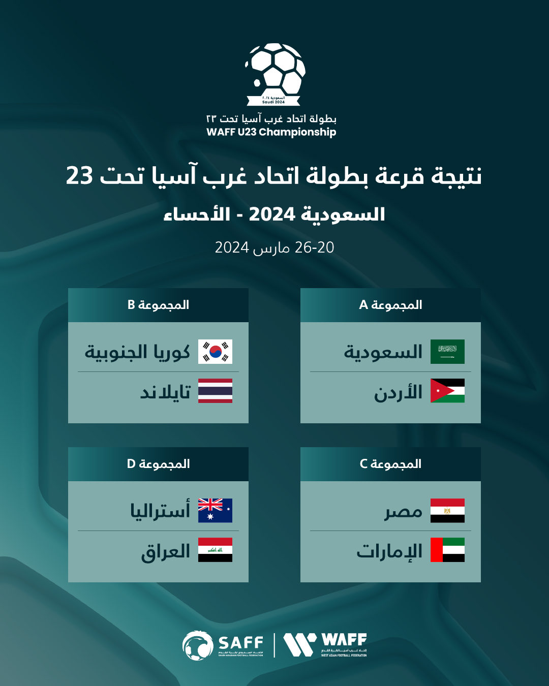 وجاءت قرعة بطولة غرب آسيا تحت 23 عامًا كالآتي:
