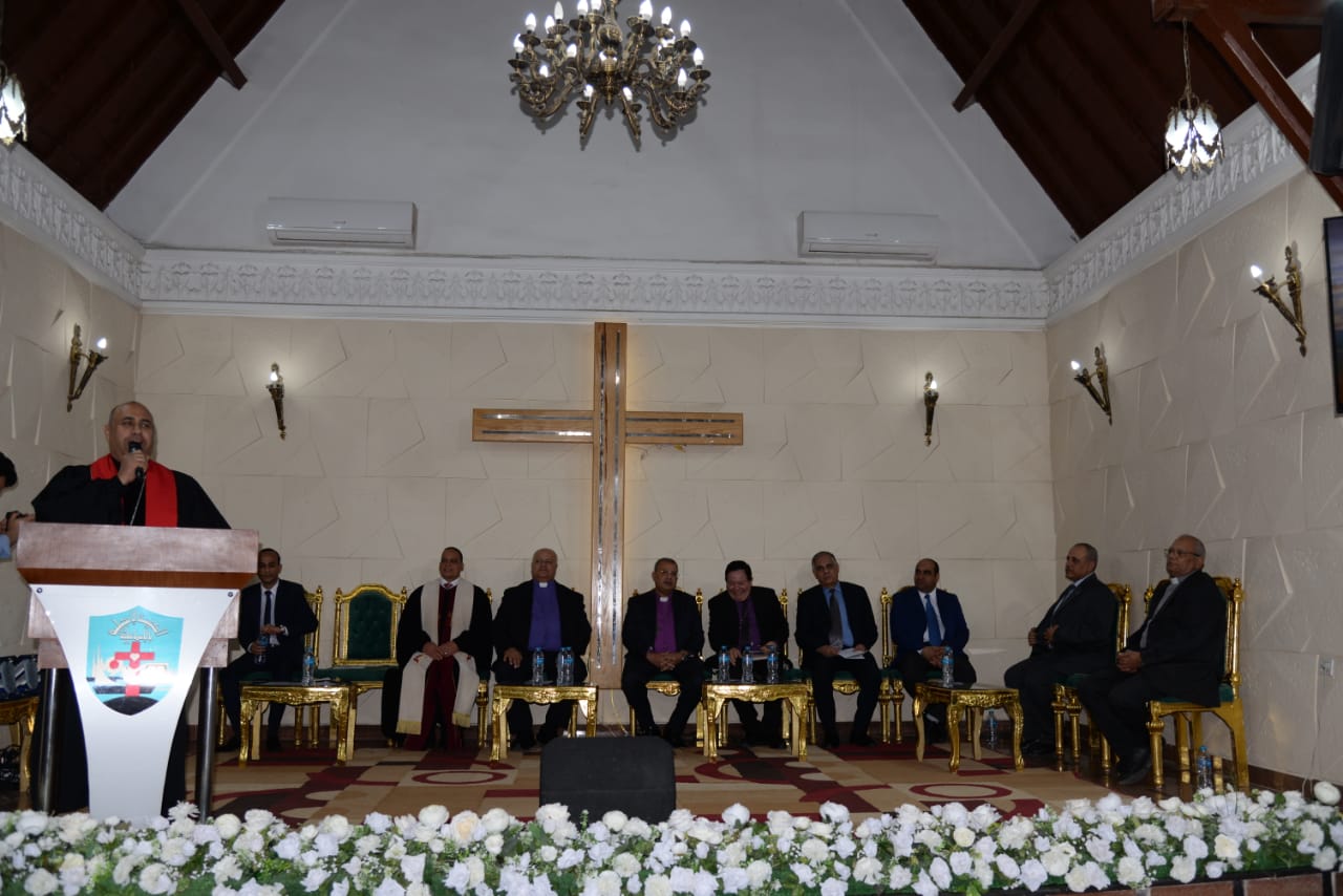 وقال رئيس الطائفة الإنجيلية خلال كلمته، "نشكر الله من أجل بلادنا، كما نشكر جميع حضور اليوم من شركاء الوطن من جميع القيادات الدينية والتنفيذية والشعبية بالمحافظة والذي يعكس التلاحم الوطني الفريد للشعبِ المصري العظيم.