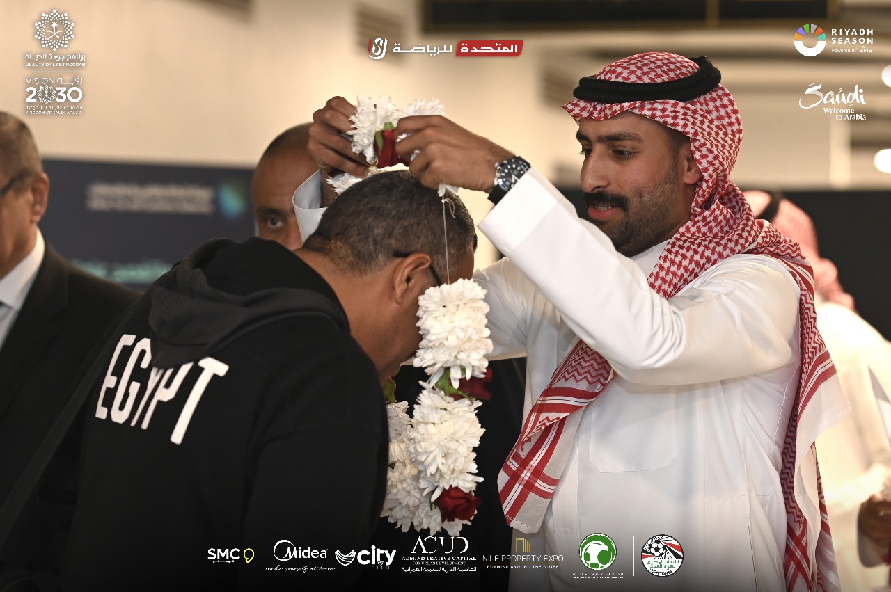 بالورود، استقبال بعثة اتحاد الكرة في السعودية استعدادا لنهائي كأس مصر (صور)