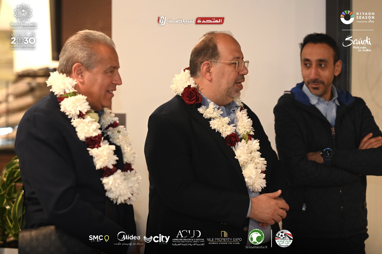 وكان في استقبال بعثة اتحاد الكرة التي كانت تحمل كأس مصر، مسئولي ومنظمي المباراة النهائية لكأس مصر في السعودية.