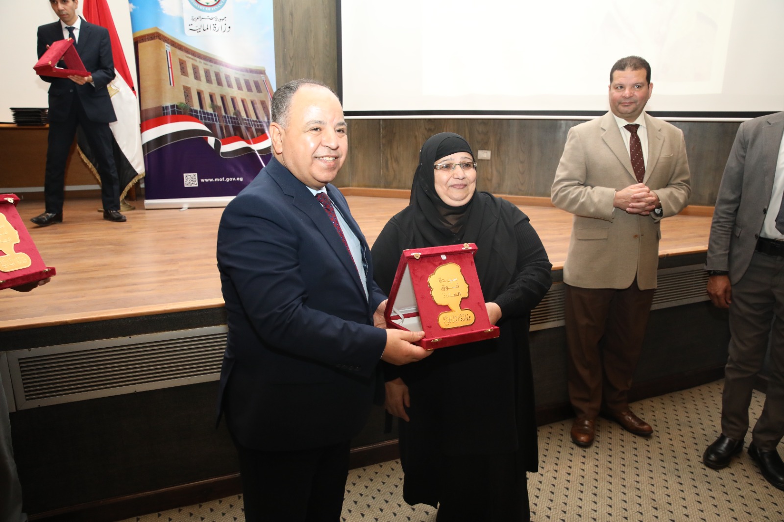 والمكرمات من السيدات فوق العادة هن: سميحة فتوح شعبان، بالإدارة المركزية لشئون مكتب الوزير، ونهى مصطفى فكرى، بمكتب الوكيل الدائم، وأسماء محمد محمد، بالإدارة العامة الشئون القانونية، وهيام محمد القناوى، بقطاع موازنات الأمن والعدالة الاجتماعية والحماية، وآمال فرج فراج إبراهيم بقطاع الحسابات الختامية، وأمل على عزت، مدير عام قطاع الموازنات البنية التحتية والشئون الاقتصادية، وإيناس جودة بقطاع موازنات التنمية البشرية، وإيمان سعد صادق حبيب، مدير شئون العاملين بوحدة التصرفات العقارية بمصلحة الضرائب المصرية، وحنان فؤاد بمصلحة الضرائب المصرية، ومنى محمد محمد مدير إدراة المكتب الفنى لرئيس قطاع الموارد الموارد البشرية بمصلحة الجمارك، وأمل هلال عطية متولى، بمنطقة الضرائب العقارية بالغربية، وتغريد حسانين خضر، ومنى أسعد عدلى جاد الله، بقطاع الحسابات والمديريات المالية، وهدى إمام صالح عبد الرحمن، بمصلحة الخزانة العامة وسك العملة.