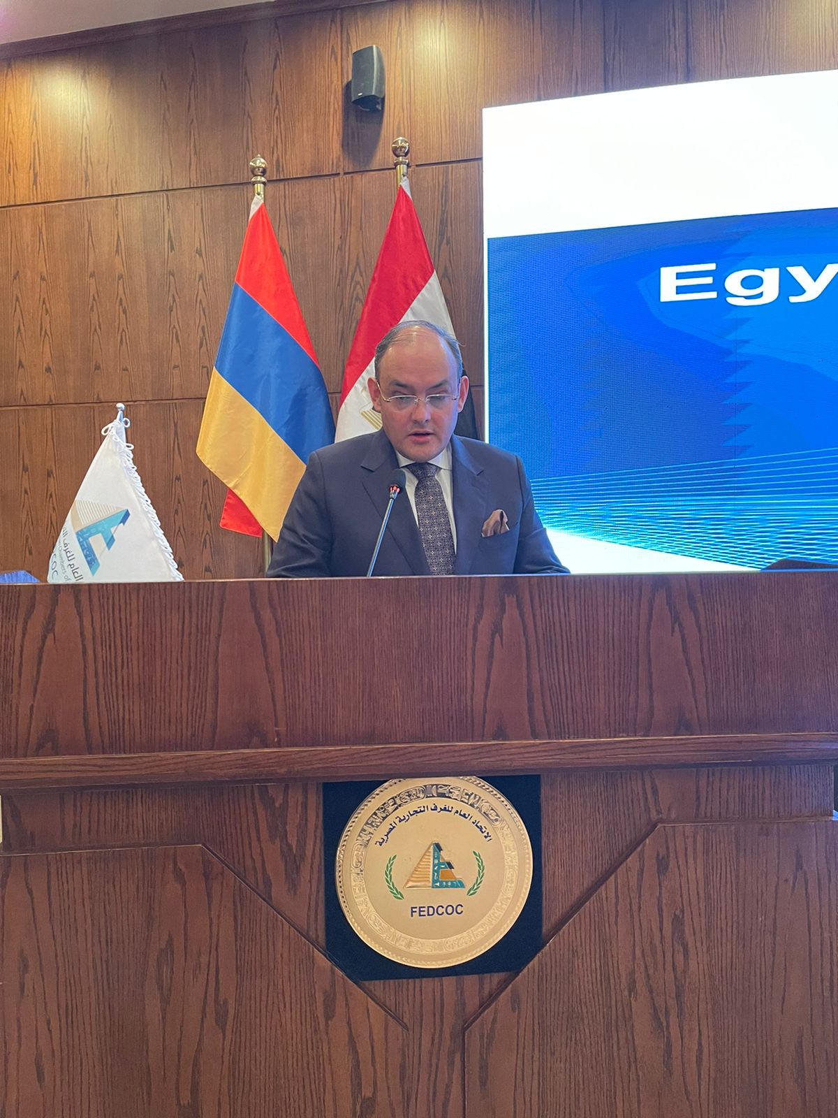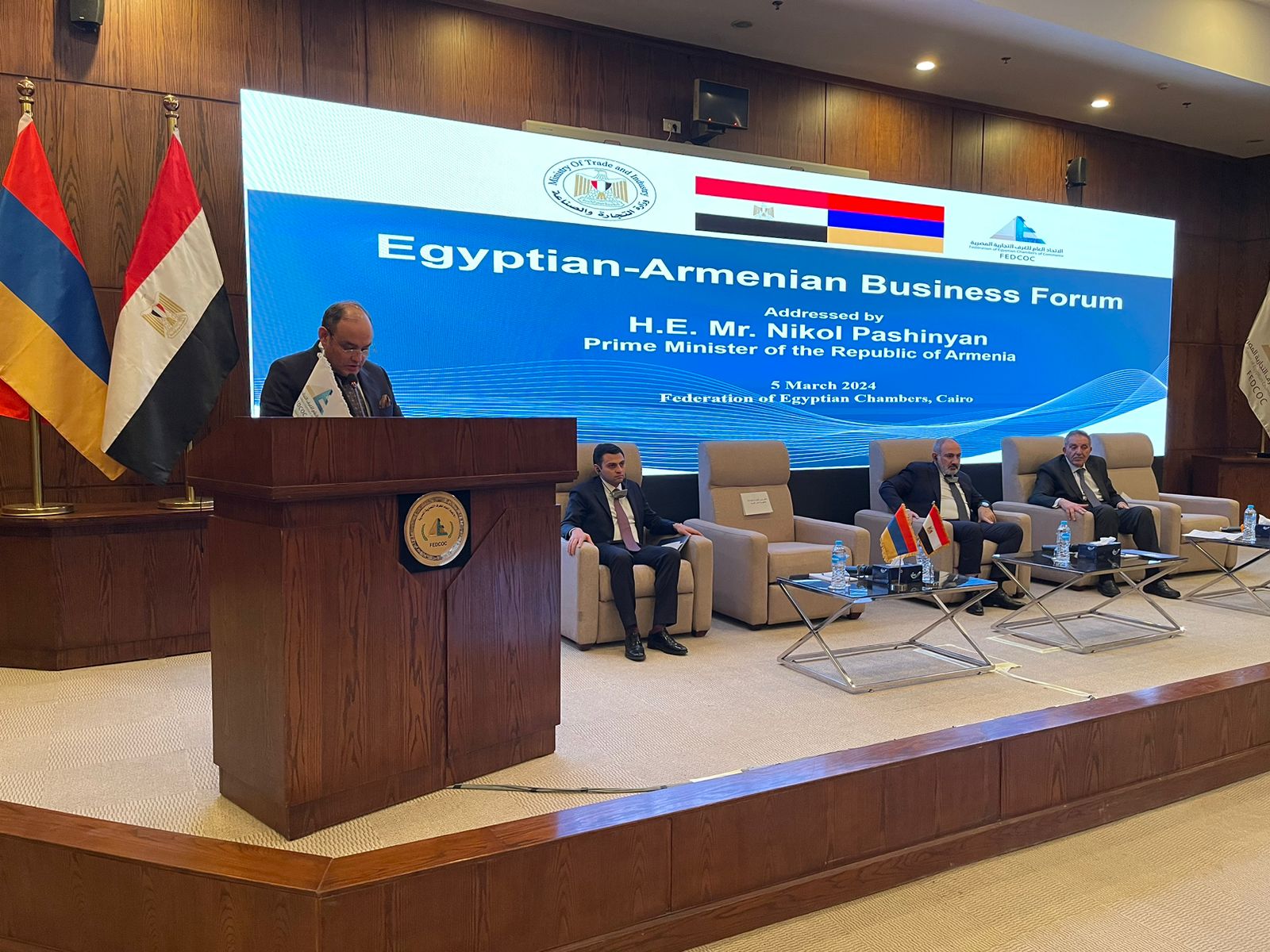 جاء ذلك في سياق كلمة الوزير التي ألقاها خلال فعاليات افتتاح منتدى الأعمال المصري الأرميني الذي نظمه الاتحاد العام للغرف التجارية المصرية، وذلك بحضور نيكول باشينيان، رئيس وزراء جمهورية أرمينيا، والمهندس محمود كمال عصمت وزير قطاع الأعمال ورفائيل جيفورجيان، نائب وزير الاقتصاد الأرميني، وليفون أوهانيسيان، مدير عام هيئة المشروعات الأرمينية والسفير هراتشيا ارشاك بولاديان سفير أرمينيا بالقاهرة، وأحمد الوكيل، رئيس الاتحاد العام للغرف التجارية المصرية.