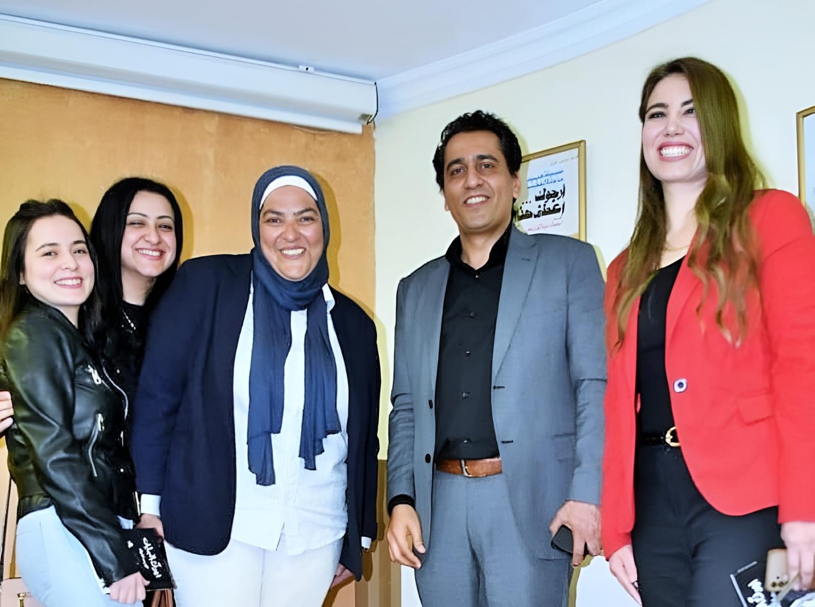 والفنان مصطفى الشيخ رئيس الجمعية المصرية للكاريكاتير والفنان فوزي مرسي الأمين العام للجمعية والفنانين سمير عبد الغني وماهر دانيال وخالد المرصفي والفنان حسن فاروق..