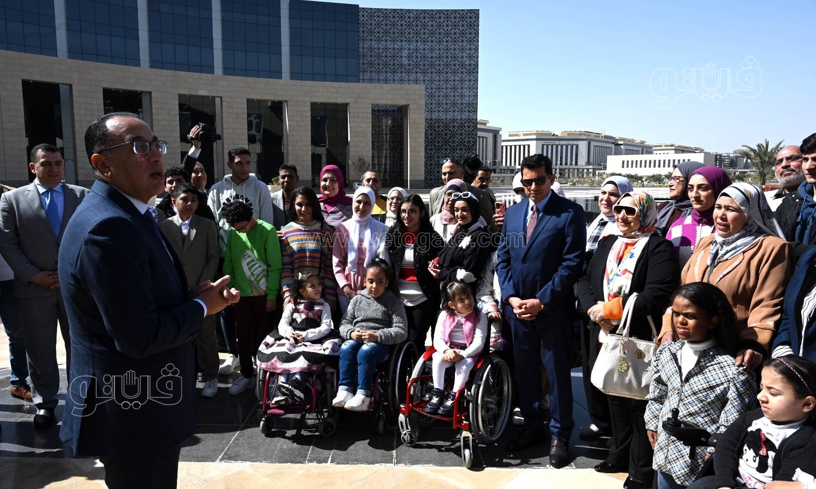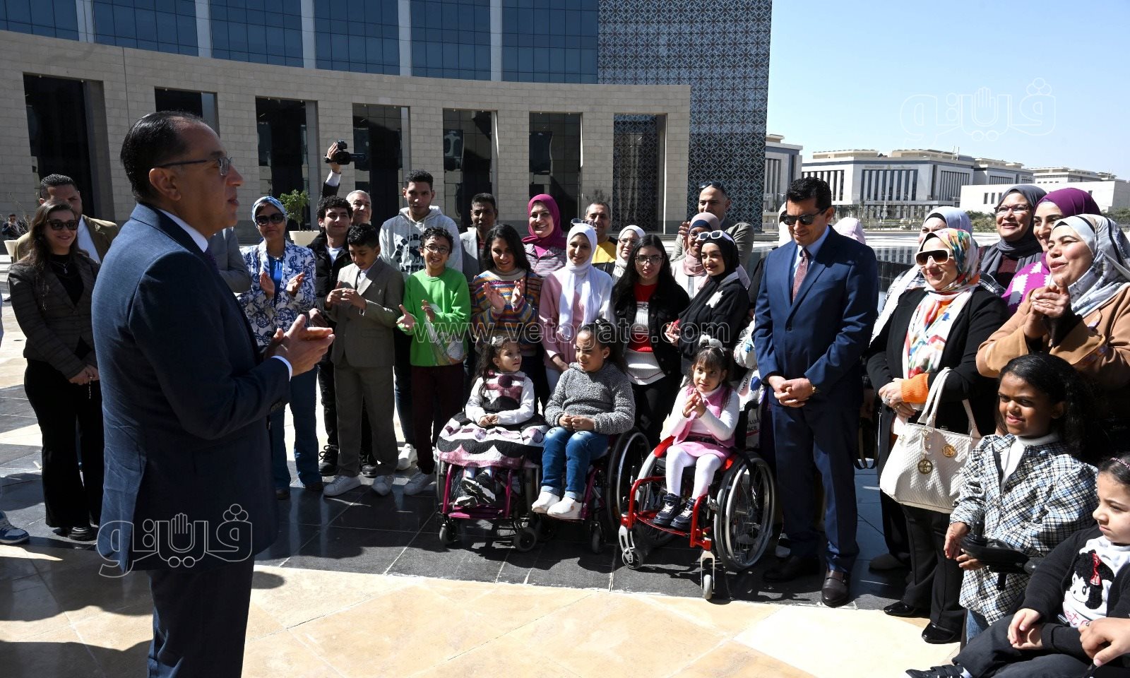 وحرص رئيس الوزراء على التقاط الصور التذكارية مع مجموعة من الأطفال من ذوى الهمم وأصحاب القدرات الخاصة، وأسرهم، الذين قدموا بدورهم الشكر على تنظيم هذه الزيارة، التي تستهدف التعريف بالعاصمة الإدارية الجديدة، وما تم على أرض الواقع من أعمال.