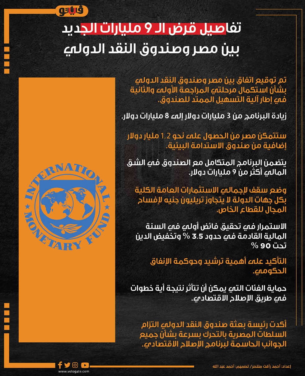 تفاصيل قرض الـ 9 مليارات الجديد بين مصر وصندوق النقد الدولي (إنفوجراف) الأربعاء 06/مارس/2024 - 08:05 م 3/6/2024 8:05:38 PM تفاصيل قرض الـ 9 مليارات الجديد بين مصر وصندوق النقد الدولي أحمد رأفت منتصر شارك طباعة 18 حجم الخط شارك طباعة قرض صندوق النقد الدولي صندوق النقد الدولى أخبار صندوق النقد الدولي أخبار مصر مصر وصندوق النقد اتقاق مصر وصندوق النقد رئيسة بعثة صندوق النقد