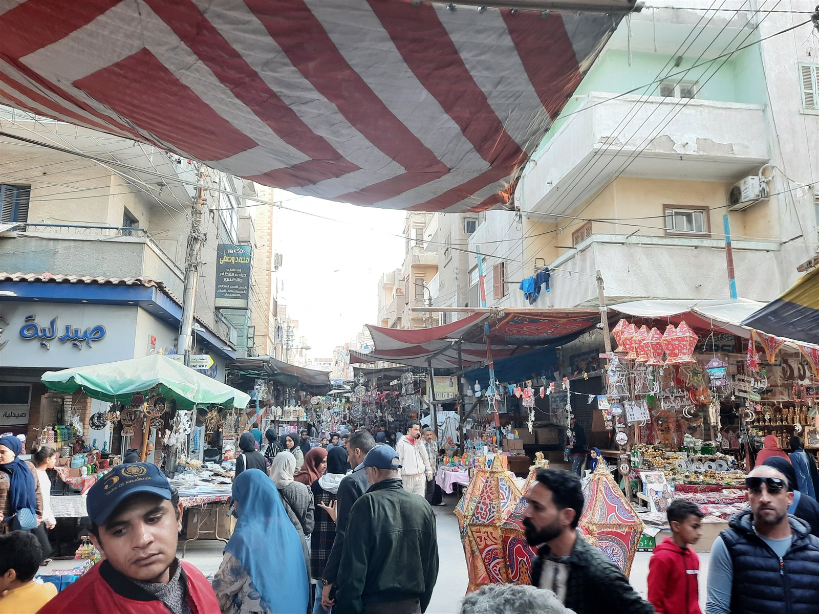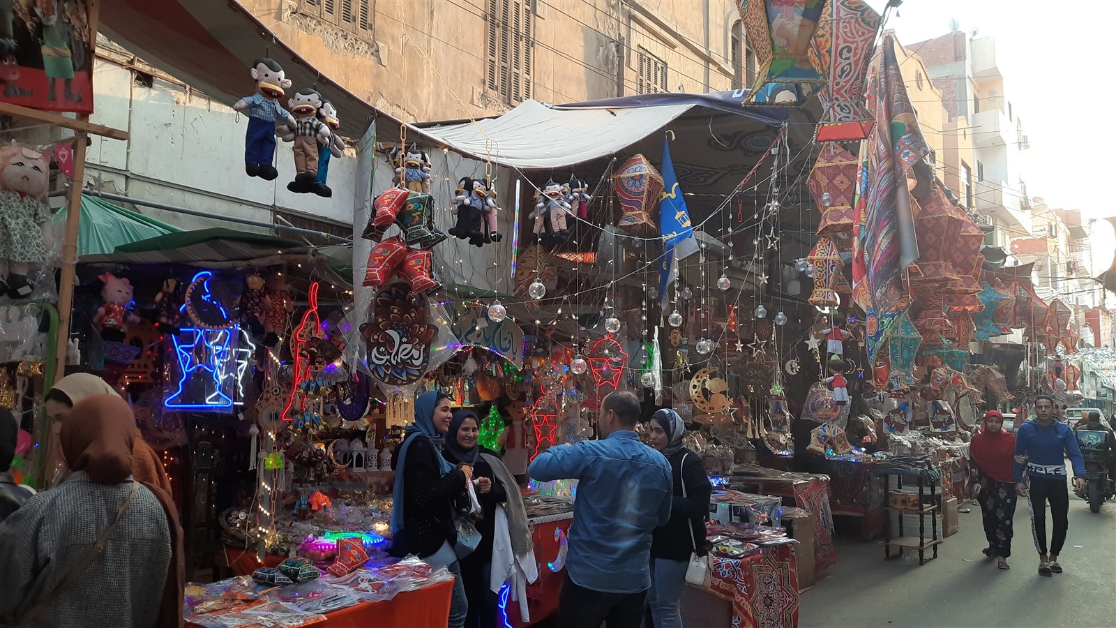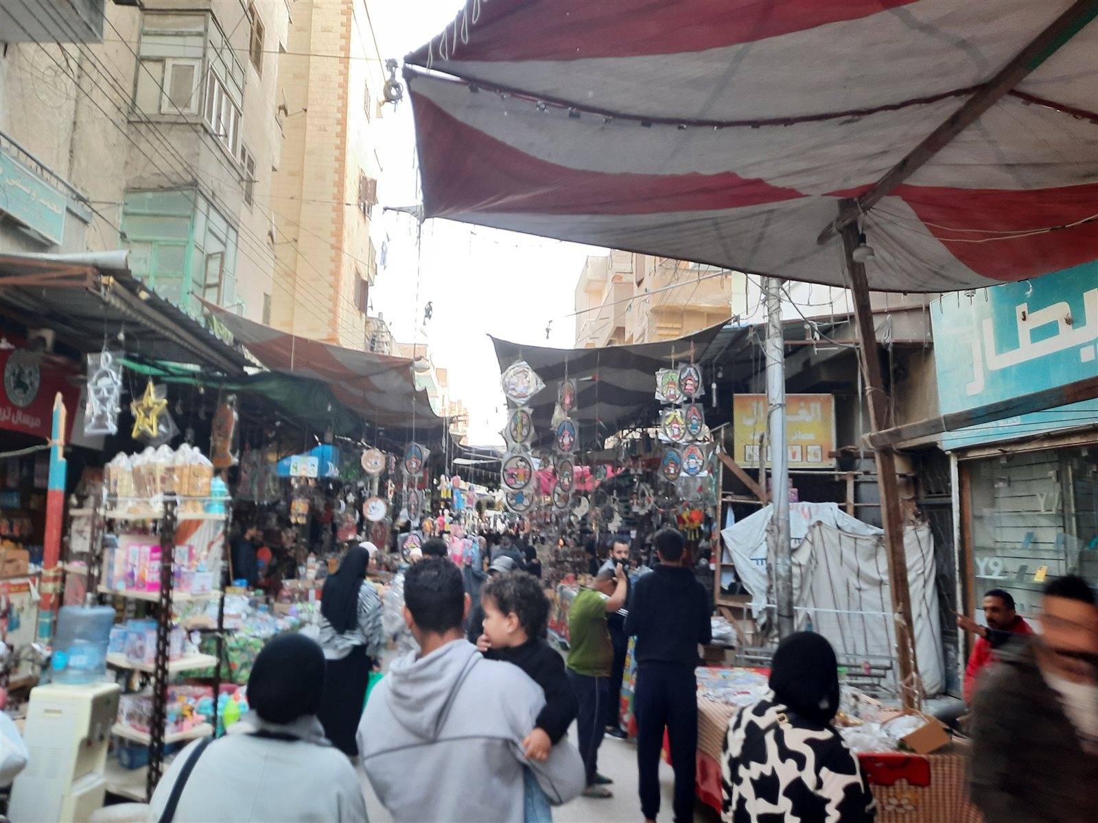 شارع مكة في الإسماعيلية يزدحم بالمواطنين لشراء زينة رمضان (فيديو وصور)