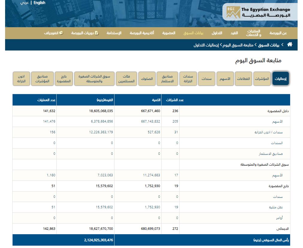 وتراجعت مؤشرات البورصة بختام تعاملات أمس الأربعاء، وسجل رأس المال السوقي نحو 2.031 مليار جنيه، لتخسر نحو 48 مليار جنيه.