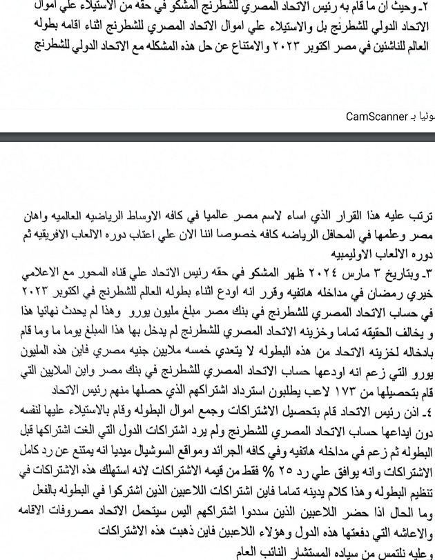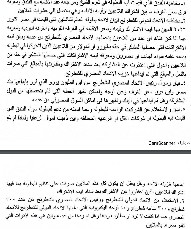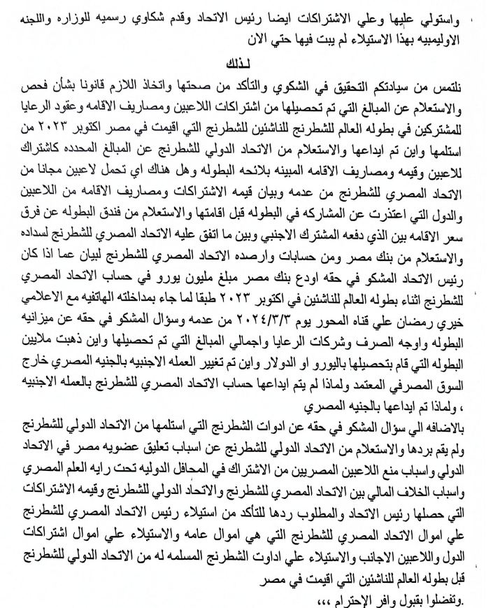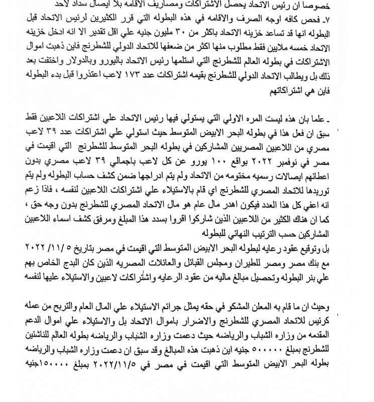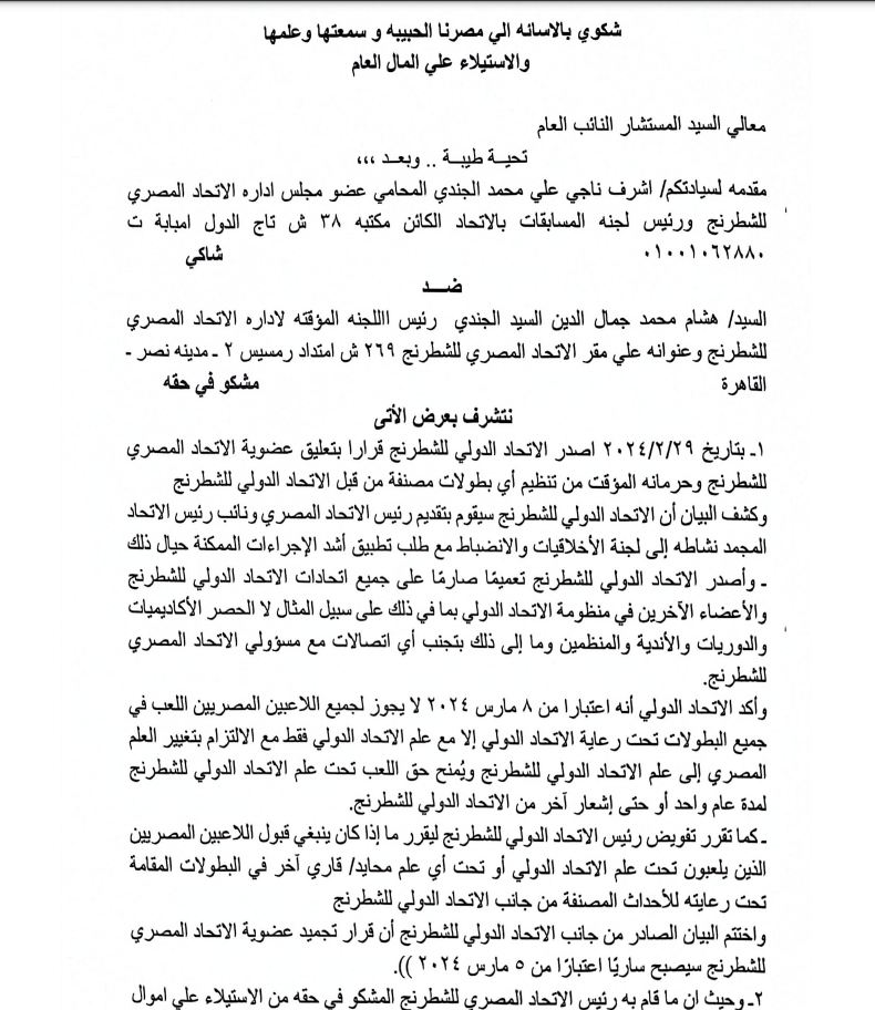 بلاغ للنائب العام ضد رئيس اتحاد الشطرنج بتهمة الاستيلاء على المال العام (مستندات)
