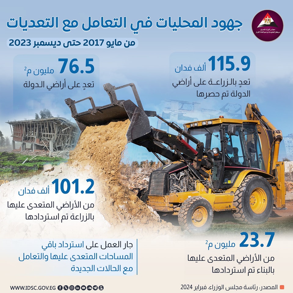استرداد 23.7 مليون متر مكعب، جهود المحليات في التعامل مع التعديات (إنفوجراف)